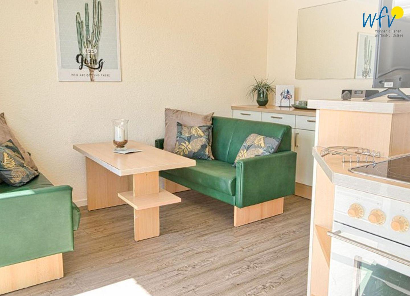 Genießen Sie Ihr Ferienfrühstück am Essplatz der offenen Küche, im gemütlichen Wohnbereich oder auf dem schönen Balkon der "Ferienwohnung Sonnenstern". Nach der Inselerkundung oder dem Strandspaziergang können Sie es sich in der Couchecke mit SmartTV und HiFi-Anlage bequem machen und lesen, fernsehen oder Musik hören. Zum Surfen vom Smartphone aus empfangen Sie freies WLAN. In der offenen Küche lassen sich leckere Snacks und köstliche Gerichte zubereiten. Ausgestattet ist sie u.a. mit Induktionsherd, Backofen und Spülmaschine.
