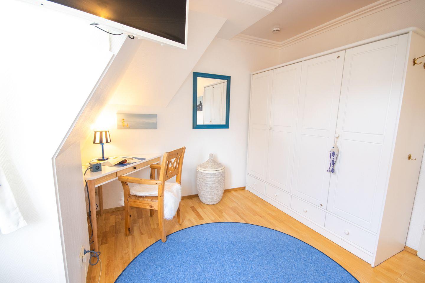 Kleiderschrank und Schreibtisch – ideal auch für ein wenig Homeoffice im Urlaub