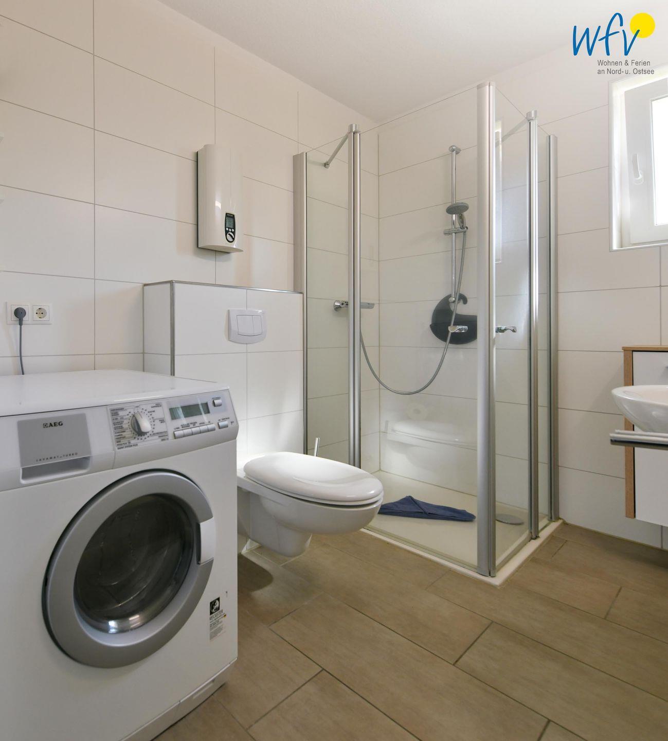 Ein gepflegtes Badezimmer mit Dusche/WC, Handtuchheizkörper, Waschtrockner und Fön sorgt für weiteren Wohnkomfort.