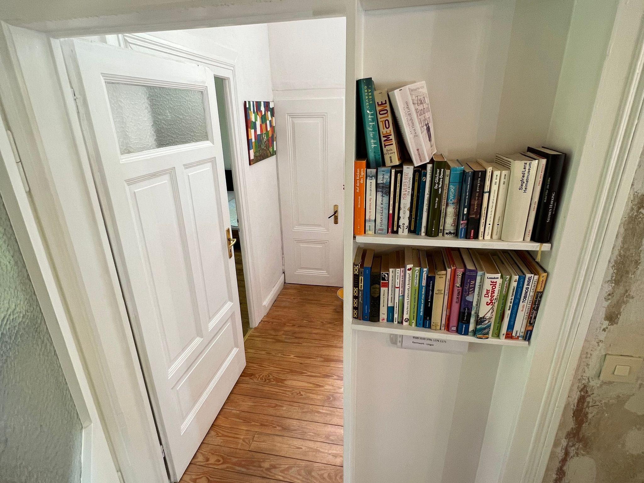 Hohe helle Wohnung, komplett eingerichtet. Alle Wege in die Stadt sind zu Fuss moeglich. Ruhige Lage.