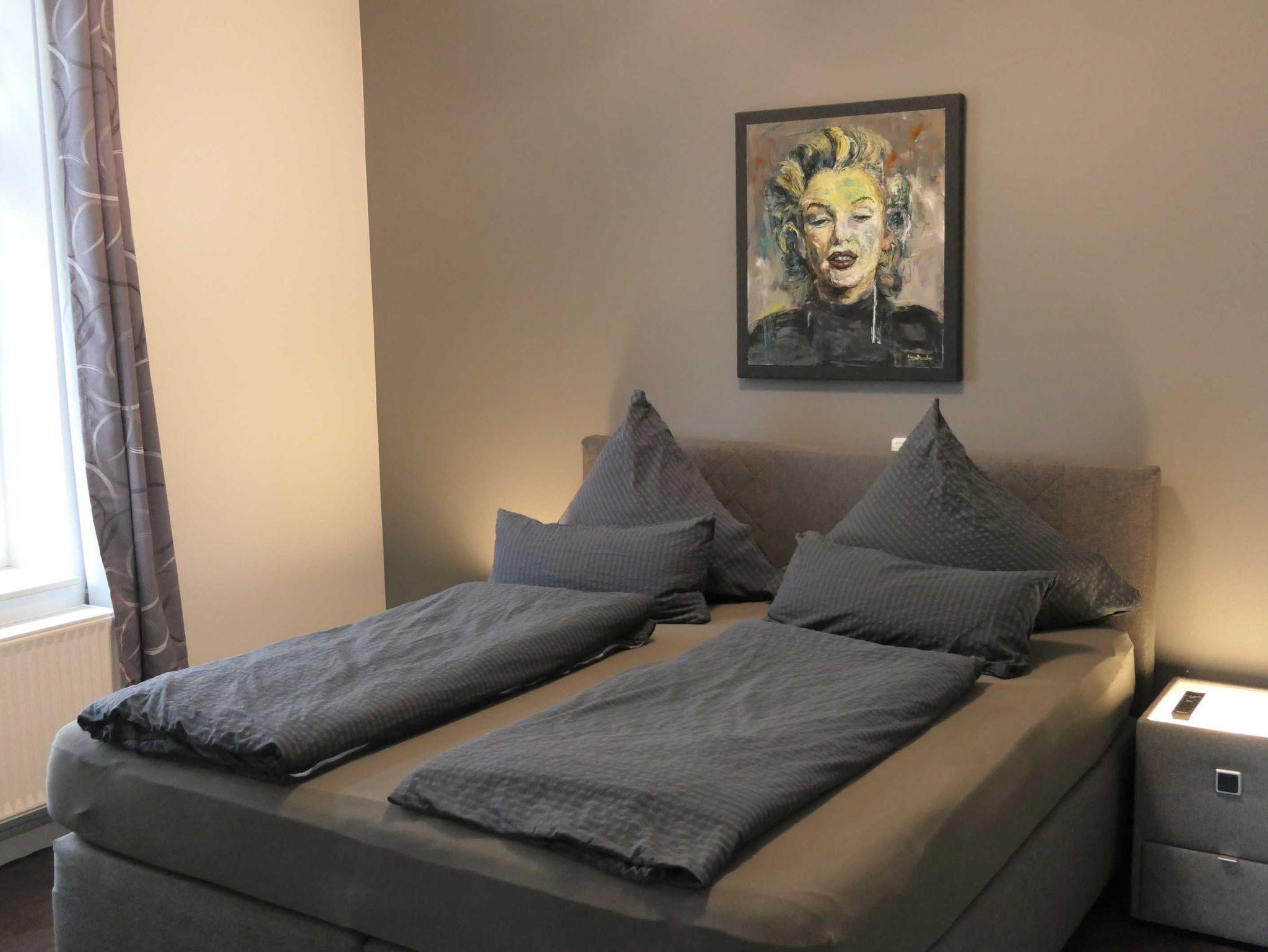Das Appartement Meerblick ist ein Dreiraum-Appartement mit 67m². Es verfügt über ein Schlafzimmer mit einem 180x200 grosses 5*Boxspringbett . An der Fensterfront stehen zwei bequeme Sessel aus den man einen guten Blick auf den Yachthafen und die einlaufenden Schiffe sowie den Flat-TV hat. Die integrierte Sauna ist ein Traum an kühlen Tagen.