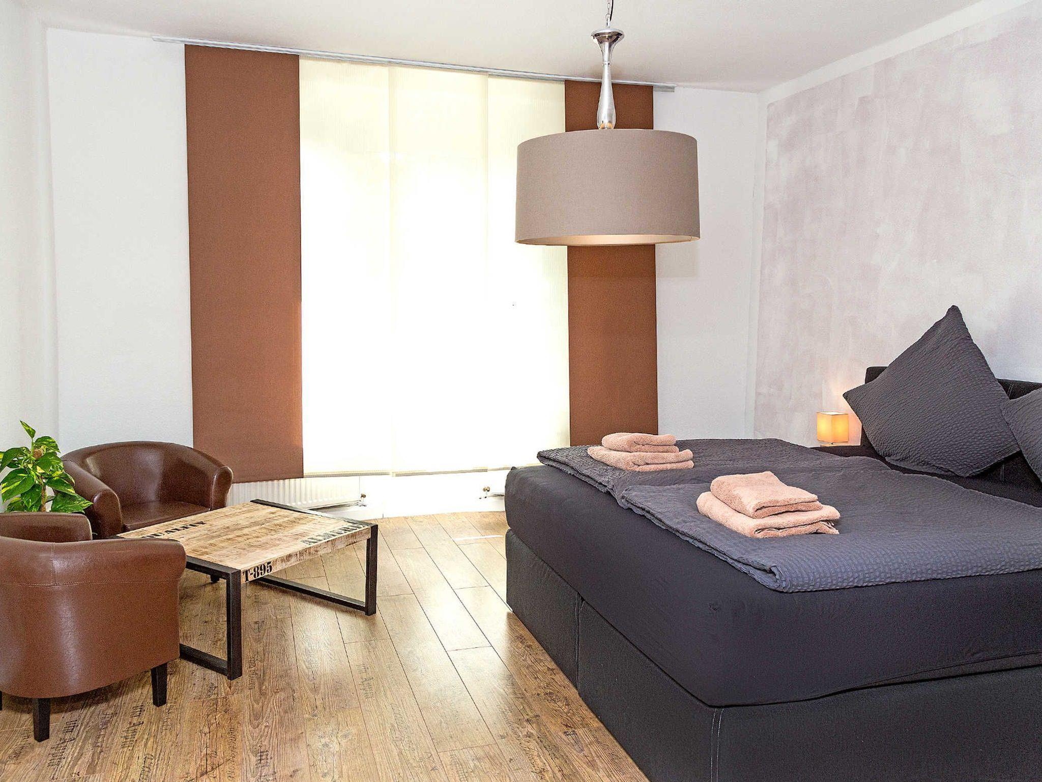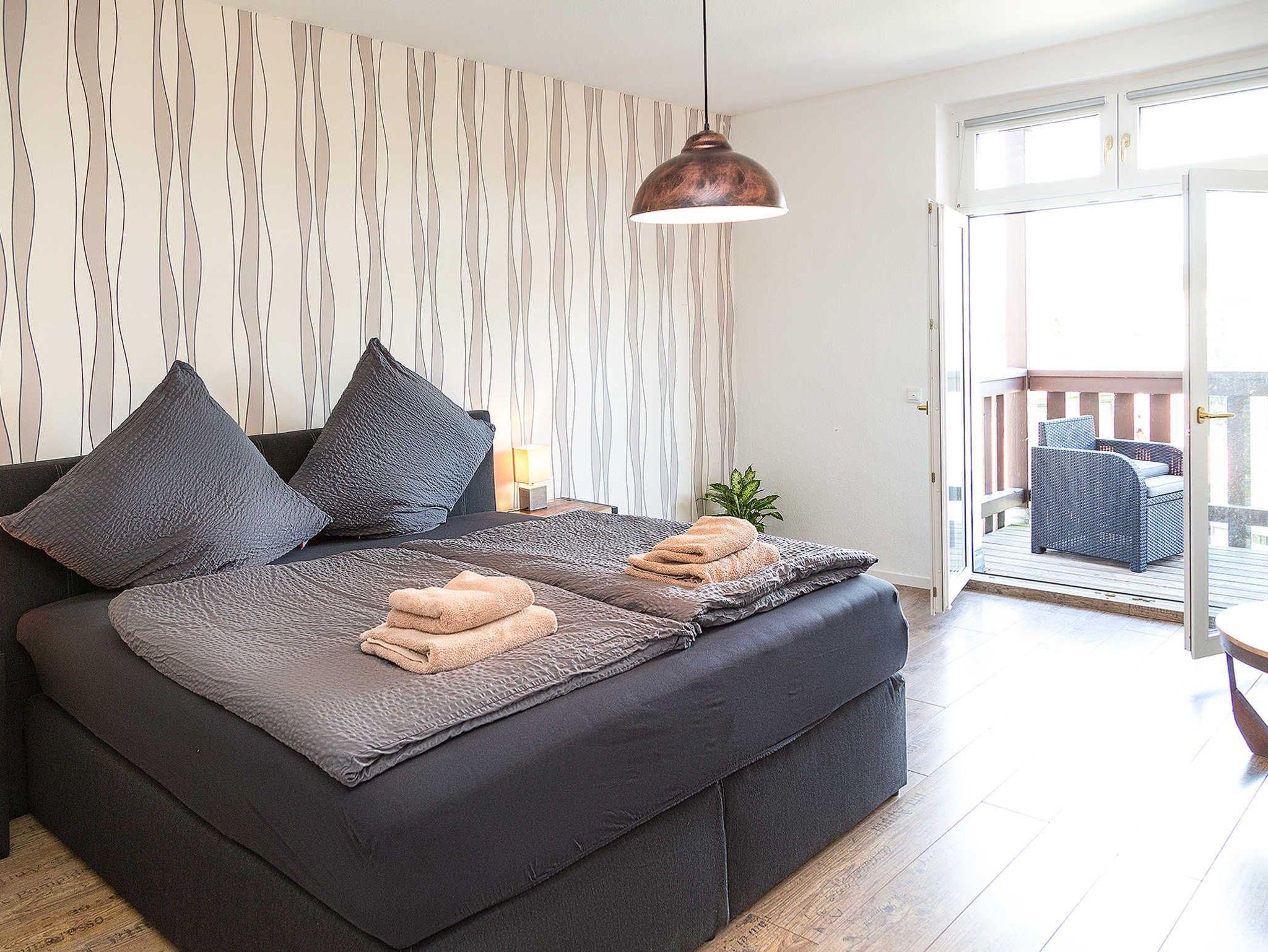 Von hier kann man rechts ins 1. Schlafzimmer sehen und auch den Blick ins 2. Schlafzimmer schweifen lassen. Beide Schlafzimmer haben ein grosses 5*Boxspringbett für einen königlichen Schlaf. Vom zweiten Schlafzimmer gelangt man dann auch direkt auf den Balkon
