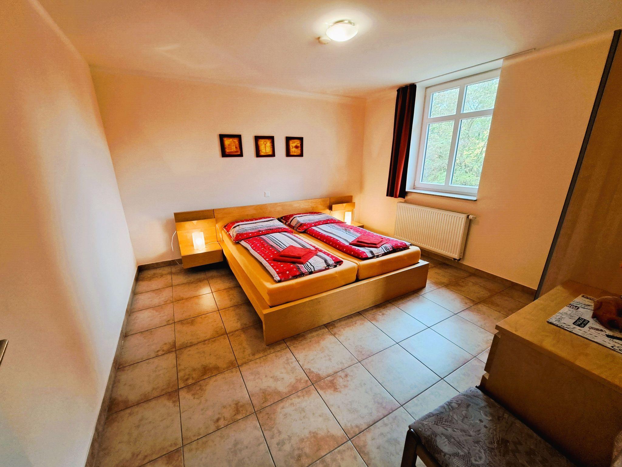 Unsere Ferienwohnung 3 (Westseite)befindet sich im Obergeschoss und bietet einen gemütlichen Balkon, ideal für entspannte Stunden im Freien. Schon beim Betreten empfängt Sie ein einladender Flur mit Sessel, Garderobe und Schuhablage. Die beiden Schlafzimmer sind jeweils mit einem komfortablen Doppelbett, Nachttischen, Lampen, Wechselschaltern und doppeltürigen Kleiderschränken ausgestattet perfekt für eine erholsame Nachtruhe.