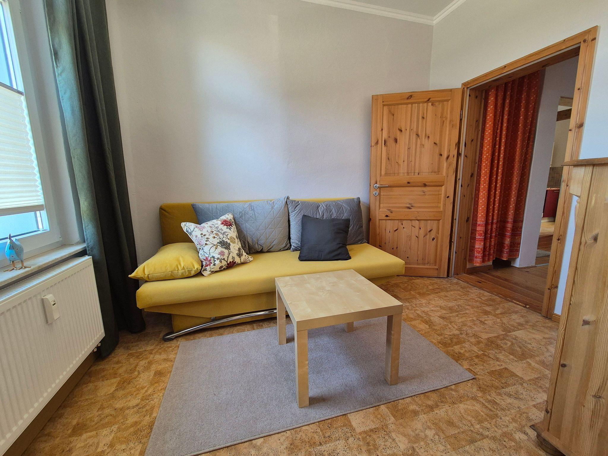 Das erste Schlafzimmer, das vom Wohnzimmer aus erreichbar ist, bietet ein Doppelbett (1,60 m breit). Zwei weitere Schlafzimmer, die hintereinander liegen, sind mit einem Doppelbett (1,40 m breit) und einer zusätzlichen Schlafcouch ausgestattet. Das helle Tageslichtbadezimmer verfügt über eine ebenerdige Dusche und eine Badewanne.
