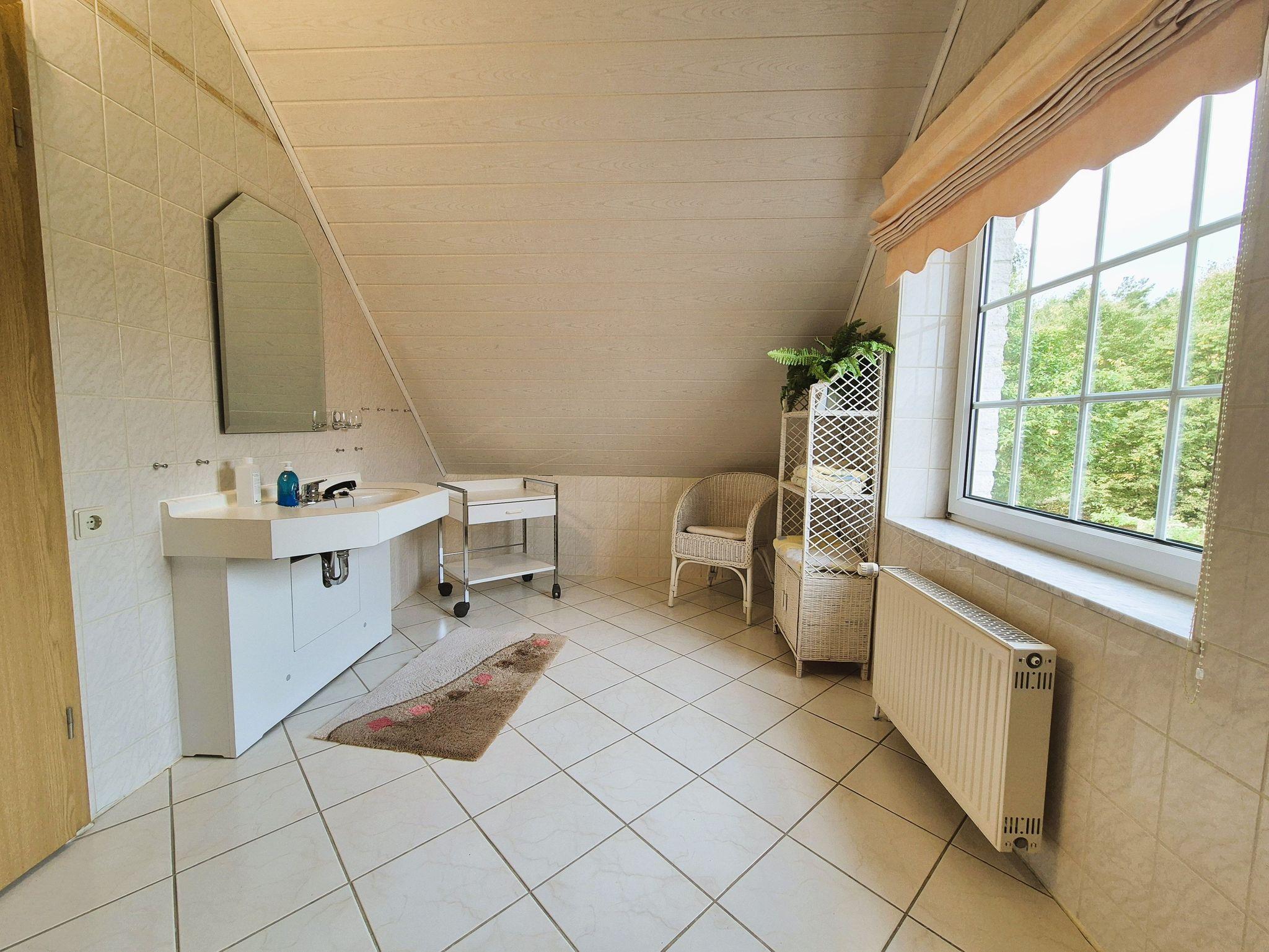 Es ist ein gepflegtes modernes Einfamilienhaus mitten im Grünen in einer sehr ruhigen Lage. Die Ferienwohnungen mit Balkon zur Südseite befinden sich im Obergeschoss des Eigenheimes der Vermieter. Es ist eine ruhige Wohnlage, zur Müritz sind es ca. 500 m, zum Kölpinsee 1 km und zur Altstadt etwa 4 km. Der Rad- und Wanderweg führt an der Unterkunft direkt vorbei, der sowohl um die Müritz oder direkt zur Innenstadt führt.