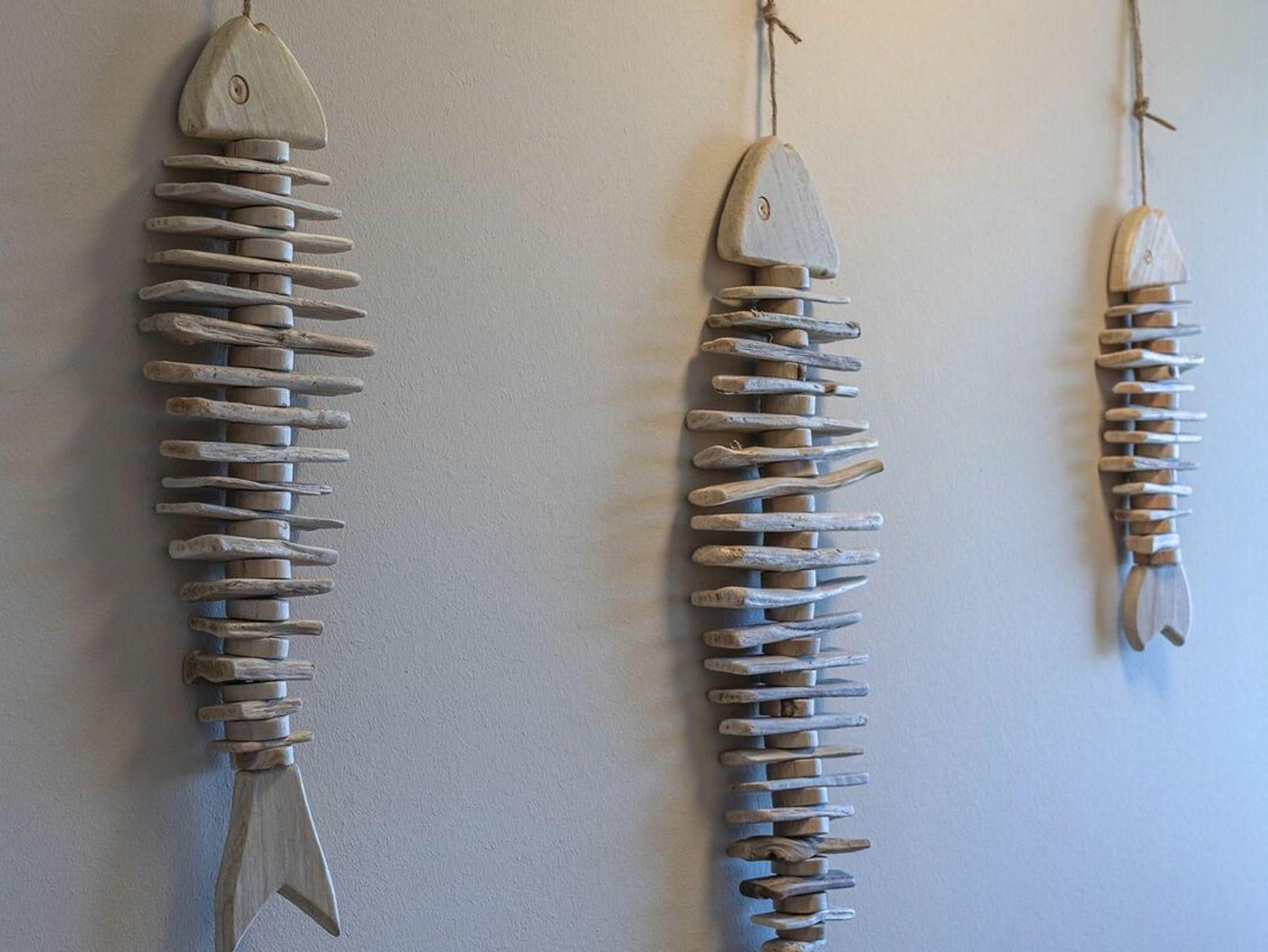 Die Wohnung erinnert an das einheimische Angler-Leben : Ruder, Reuse, Angelruten und künstlerische Fisch-Gräten an den Wänden. Blick-Punkte in eine andere Welt.
