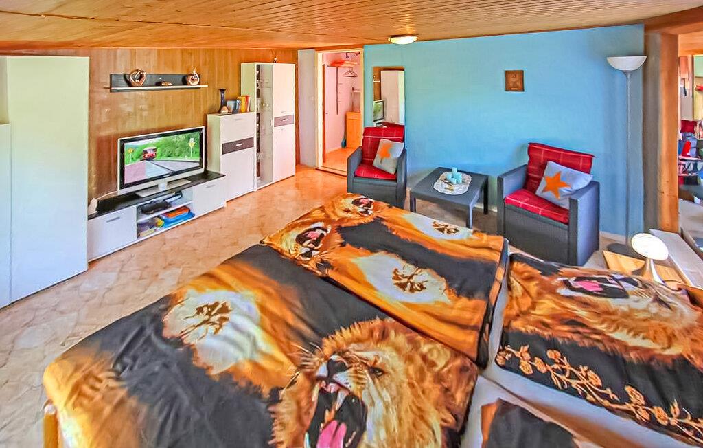 Eines von zwei separat gelegenen Ferienhäusern in einem Nebengebäude auf dem 1200 Quadratmeter großen Wohngrundstück des Eigentümers in ruhiger Lage im Ortsteil Eldenholz. Bis zum Warener Zentrum sind es etwa 2 km. Die Einraum-Ferienwohnung ist ausgestattet mit einem kombinierten Wohn-/Schlafraum (Polstermöbel, Flachbild-TV, Radio/CD, Doppelbett, teilweise mit Gästebett), Küche (Elektroherd, Kühlschrank mit Gefrierfach, Mikrowelle, diverse Küchengeräte), DU/WC. Die Deckenhöhe im Wohn-/Schlafzimmer sinkt von ca. 2,00 m bis ca. 1,90 m.ab. Zur Verfügung steht je eine möblierte Terrasse, Grill, Fahrradunterstellmöglichkeit sowie Pkw-Stellplatz. Im Gesamtpreis enthalten sind Handtücher, Wasser- und Energieverbrauch und Endreinigung. Waren ist kurtaxepflichtig. Bettwäsche ist bitte selbst mitzubringen.
