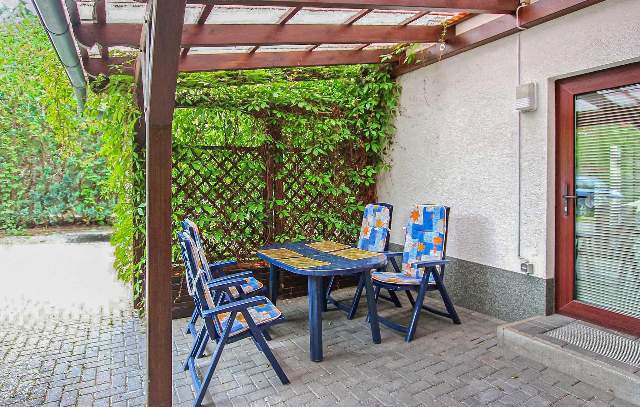 Diese ca. 65 qm große Wohnung für bis zu 4 Personen liegt in einem separaten Anbau, kann über zwei Eingänge betreten werden (1 x Küche, 1 x Wohnzimmer) und erstreckt sich über 2 Etagen. Das Erdgeschoss verfügt über Fußbodenheizung, hier befinden sich das Wohnzimmer (Schlafcouch, Esstisch, Flachbild-TV, Radio/CD) und die Küche (E-Herd mit Backofen, Kühlschrank mit Gefrierschrank, Mikrowelle, Spülmaschine, div. Küchenkleingeräte). Das Schlafzimmer (Doppelbett, Rollbett) und das Bad (Dusche, Wanne, Waschmaschine) im Obergeschoss sind über eine Treppe erreichbar. Zur Wohnung gehört eine möblierte, überdachte Terrasse mit Blick in den großen Garten.