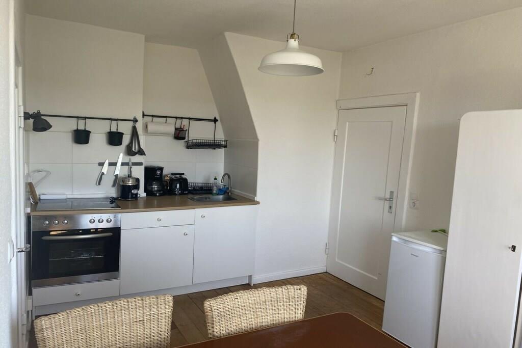 Welcome to our small, cozy, and practically furnished holiday apartment with a combined living and bedroom, ideally suited for up to three people. The kitchen with a small dining area is compact but fully equipped. Here you will find a stove, oven, coffee maker, toaster, kettle, and refrigerator. The living room invites you to relax and offers a comfortable sofa that can be converted into a sofa bed if needed. There is intentionally no television so you can enjoy peace and quiet. Next to the bedroom with a double bed, you will find the bathroom with a shower and bathtub. A washing machine is also available in a small anteroom.