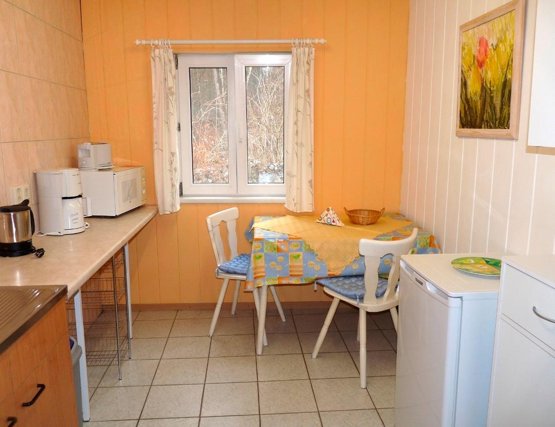Das Ferienhaus an der Müritz in Waren ist liebevoll eingerichtet. Sie betreten es ebenerdig im Flur. Im Wohnzimmer befinden sich eine Couch, ein Korbsessel, ein kleiner Tisch, eine Wohnwand und ein Fernseher. In der Küche finden Sie einen Herd mit Backofen, eine Mikrowelle, einen Toaster, eine Kaffeemaschine, eine Spüle, einen Kühlschrank und einen Tisch mit zwei Stühlen. Das geräumige Bad hat eine Dusche, das WC, einen Hocker und ein Waschbecken. Das Schlafzimmer ist mit zwei Betten, einem Tisch, einem Stuhl, einer Kommode und einem Kleiderschrank möbliert. Zum Ferienhaus gehört eine Terrasse mit Gartenmöbeln. Zwei Liegen stehen Ihnen auf der dazugehörenden Liegewiese zur Verfügung. Alle Bilder im Ferienhaus sind von der Vermieterin selbst gemalt. Gern dürfen Sie auch die Galeriewerkstatt auf dem Grundstück besichtigen. Ein PKW-Stellplatz ist an der Straße vor dem Grundstück vorhanden.