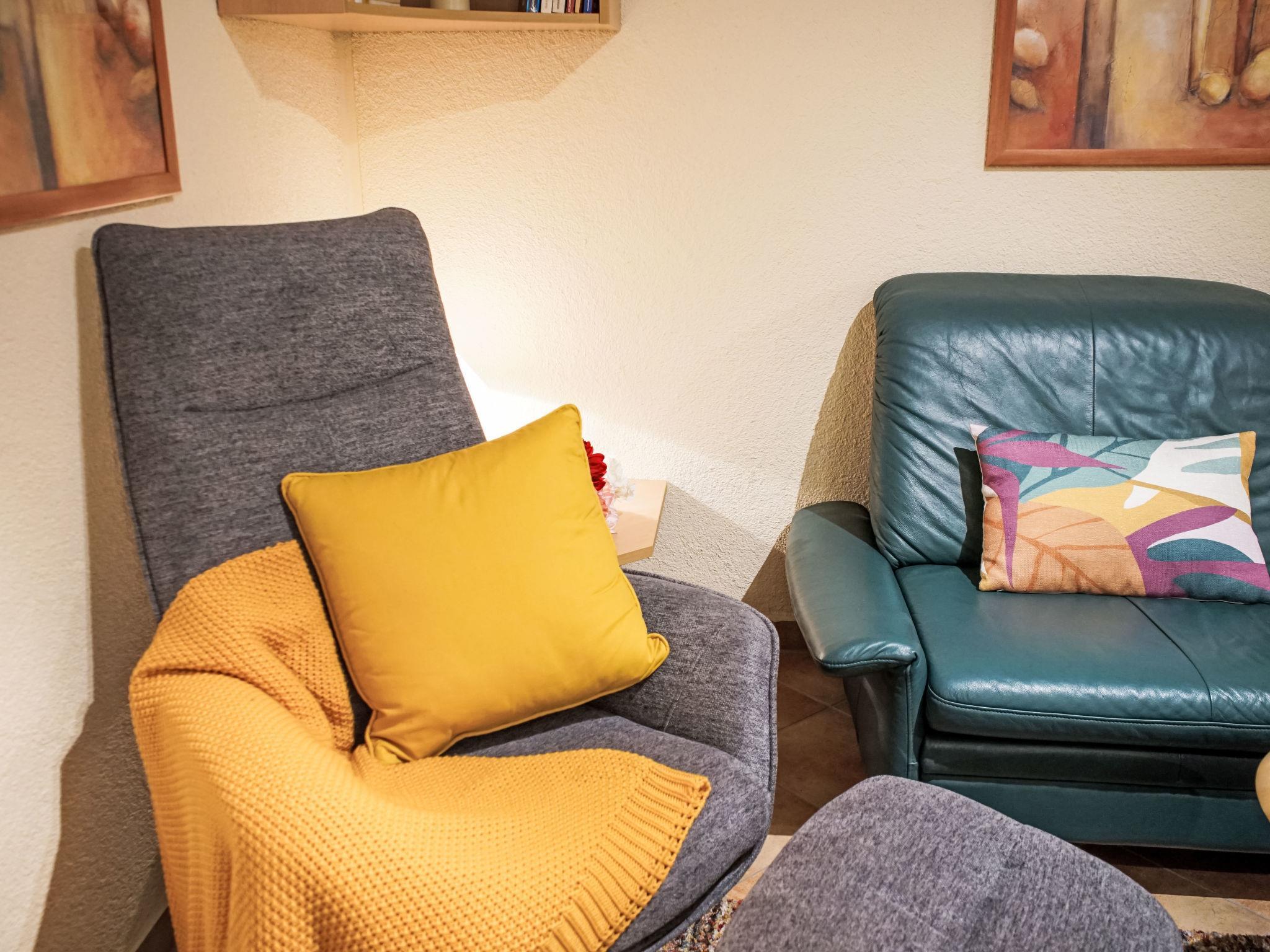 4-room apartment on 2 levels. Cosy furnishings: living/dining room with panoramic window with Scandinavian wood stove, dining table and satellite TV (flat screen), radio. Exit to the terrace. 1 room with 1 double bed (180 cm, length 200 cm). Kitchenette (oven, dishwasher, 4 ceramic glass hob hotplates, toaster, kettle, microwave, electric coffee machine). Shower/WC. On the lower ground floor: 2 rooms, each room with 1 double bed (180 cm, length 200 cm), dining table and satellite TV (flat screen). Shower/WC. Gas heating. Terrace, garden. Terrace furniture, barbecue (portable). Beautiful view of the lake. Facilities: children's high chair, baby cot (extra). Internet (WiFi, free). Parking at the house. Please note: suitable for families. Non-smokers only. Maximum 1 pet/ dog allowed. Smoke alarm. No internal connecting door between the floors. Lake approx. 100 m. If booking with 2 people, only the ground floor will be open. If booking with 3 people or more, the basement can also be used. When there are less than the maximum number of guests staying at the property, one floor will not be available for use.