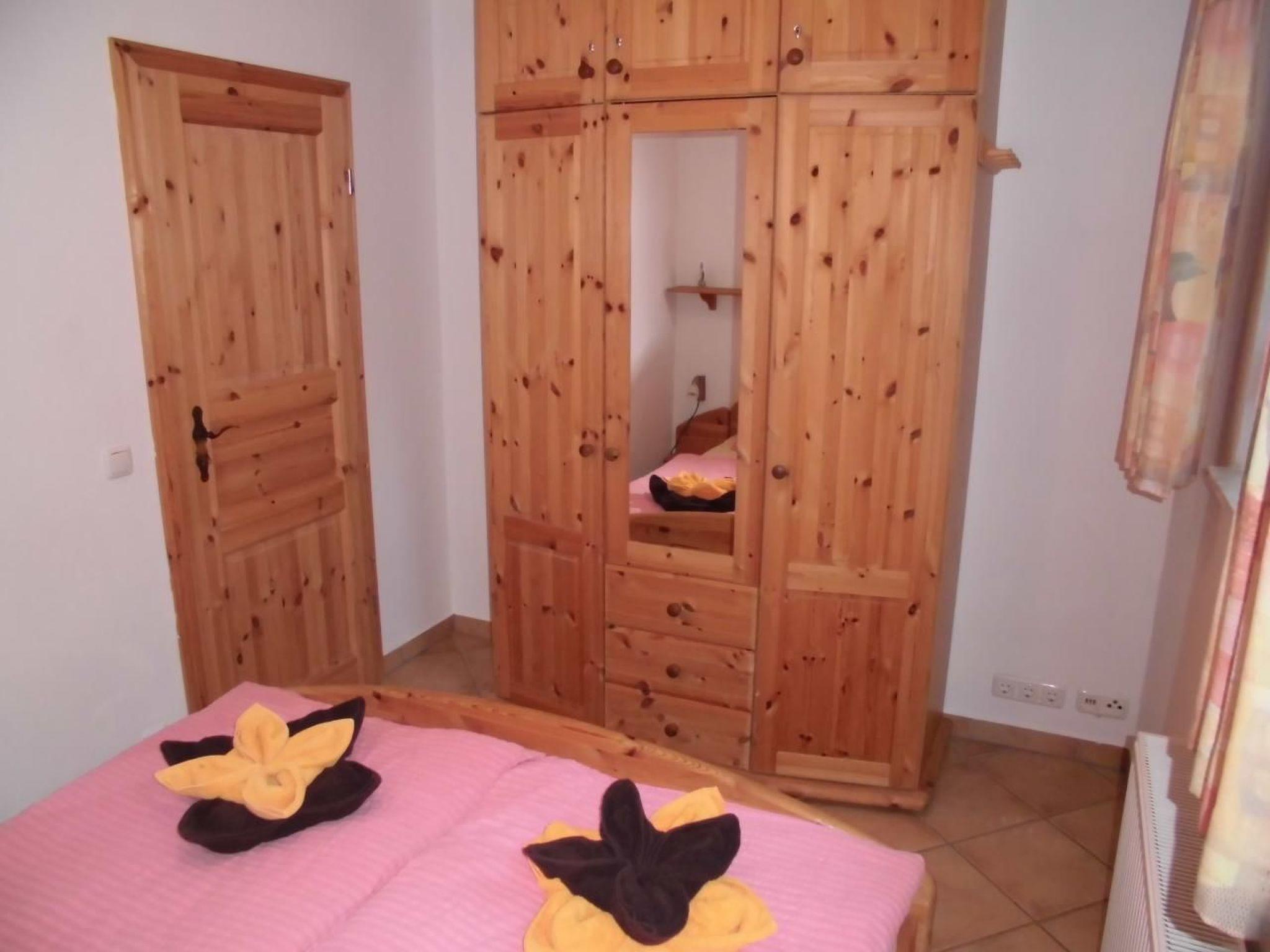 The basement flat for 1-3 people is half above ground level and has open, unobstructed windows.Living and dining room with a sofa bed (150 x 200) for 2 people, 2 armchairs, 2 stools, wardrobe with mirror, desk, patio door, satellite TV, radio with CD, high-quality kitchenette, fridge/freezer, 2 ceramic hobs, coffee machine, toaster, kettle, crockery, dishwasher, microwave, dining table 140 x 80 and 4 chairs, bedroom with double bed (160 x 200), shower/WC, terrace with seating, car parking space directly at the house.