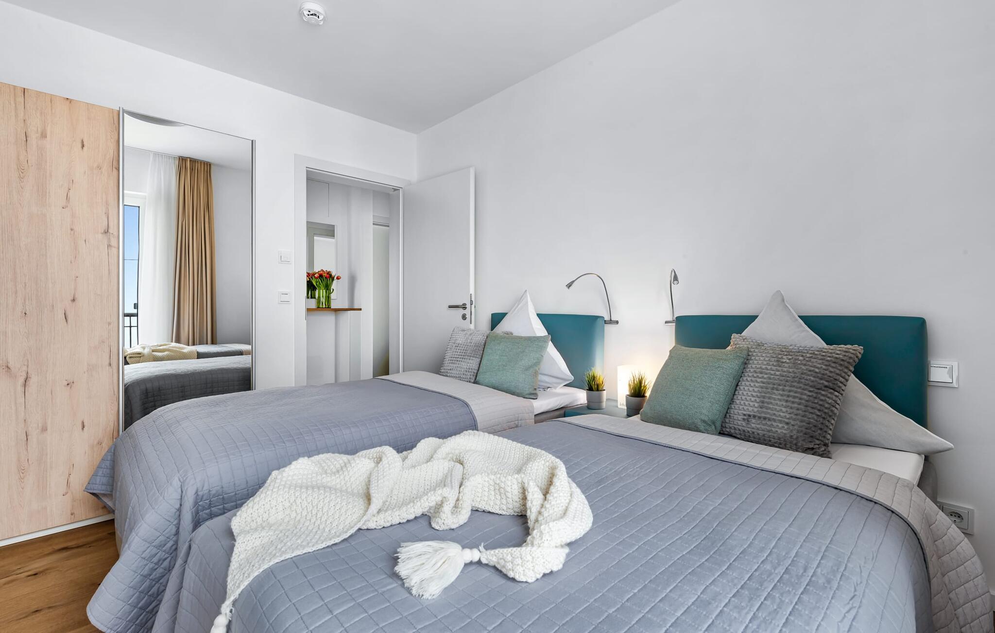 Komfort bieten auch die beiden Schlafzimmer. Ihr könnt euch entscheiden zwischen einem Doppelbett oder zwei Einzelbetten. Meerblick ist in beiden Schlafräumen garantiert und was gibt es Schöneres als damit einschlafen und aufwachen zu dürfen.
