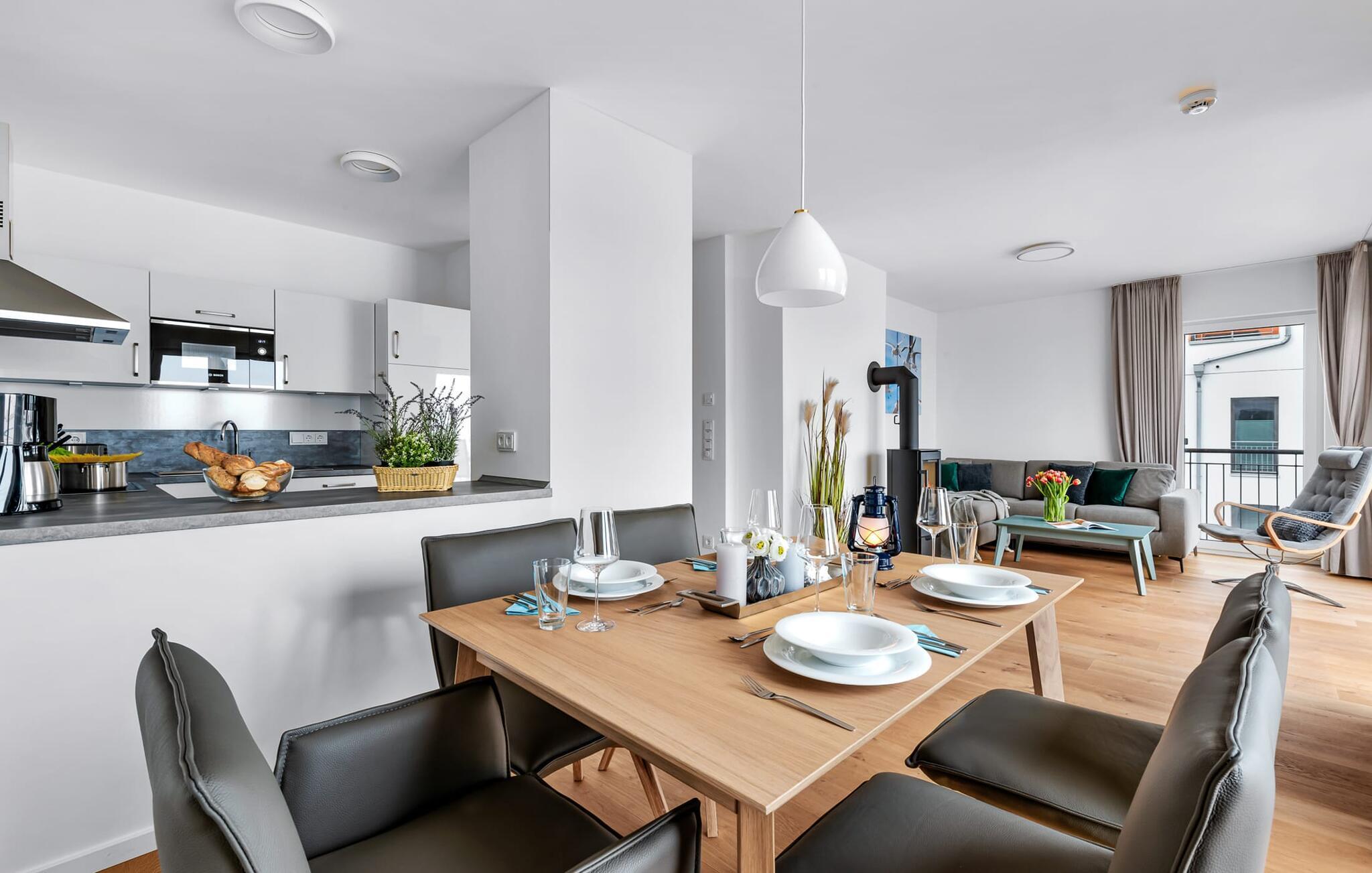 Die perfekt ausgestattete Küche lässt keine Wünsche offen und man freut sich darauf kochen zu dürfen. Anschließend auf dem Balkon gemeinsam zu essen, ist jeden Tag auf's Neue ein Genusswas will man Meer?