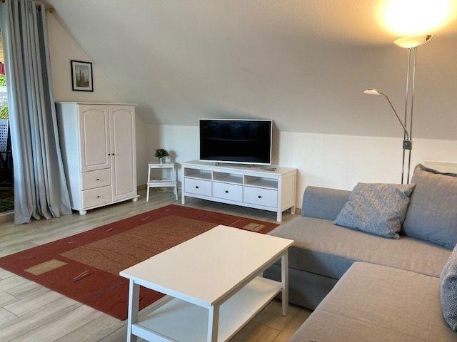 Eßtisch mit 4 Stühlen, eine Couch mit Tisch und TV-Gerät ( inklusive ,Smart- TV) für einen erholsamen Aufenthalt. .