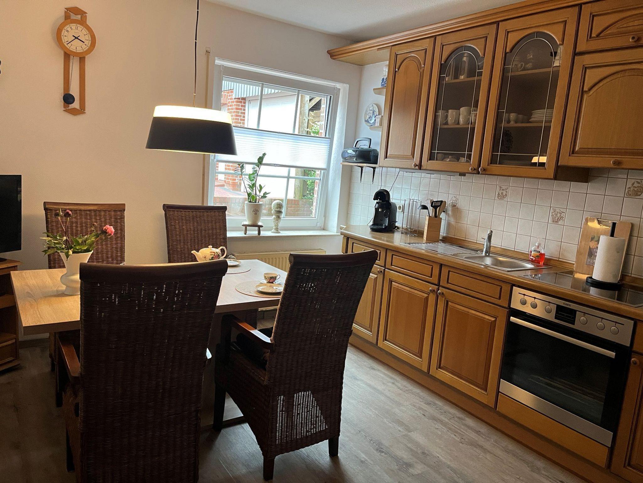 -Eine gemütliche gut ausgestattete große Küche mit Flachbildfernseher wo 4 Personen ausreichend Platz haben.