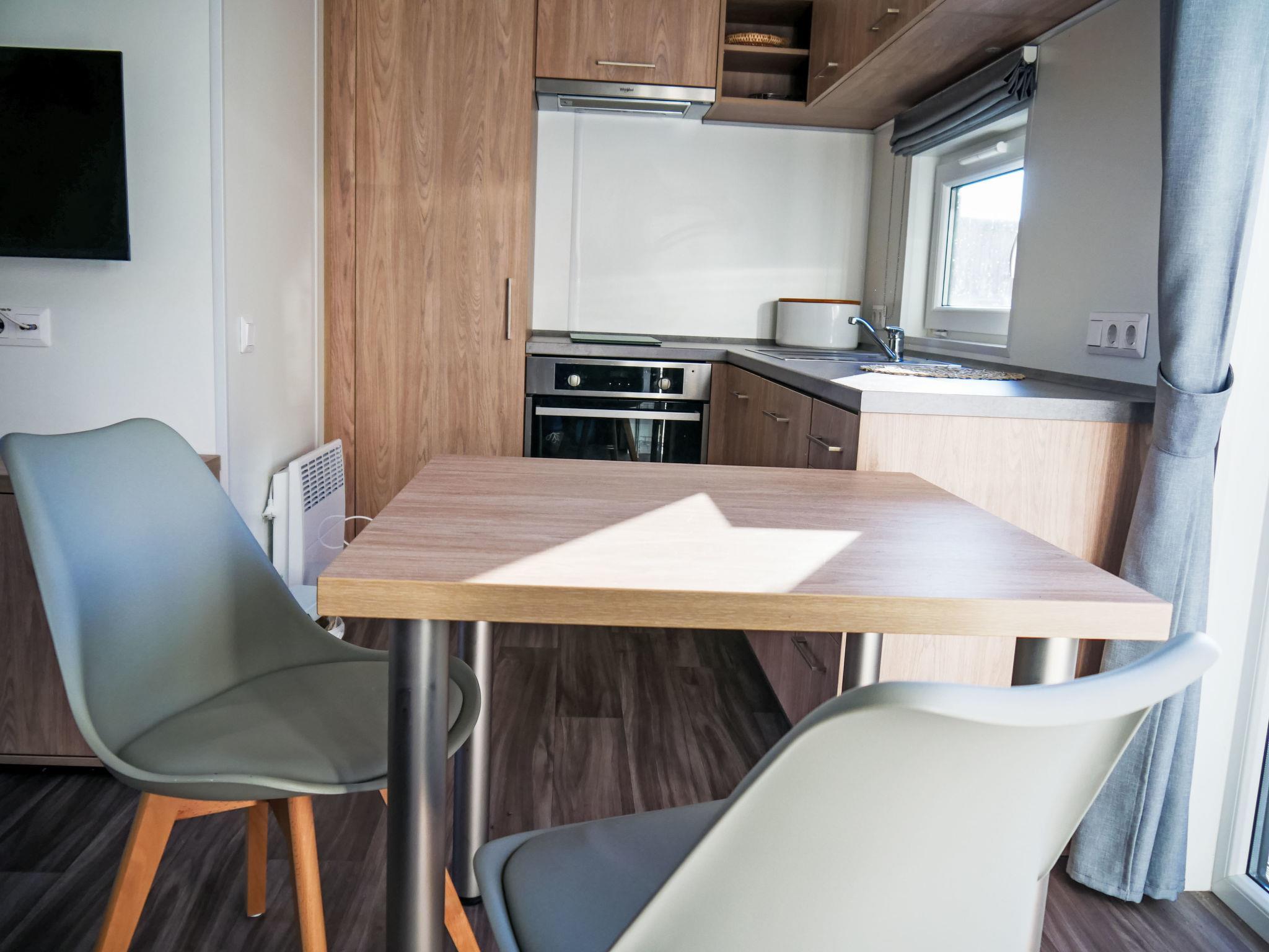 "Tiny Haus Auszeit", 2-room mobile home 25 m2. Object suitable for 2 adults + 2 children. Cosy furnishings: living/sleeping room with 1 double sofabed and satellite TV. Exit to the terrace. 1 room with 1 french bed (140 cm, length 200 cm). Open kitchen (oven, 2 induction hot plates, toaster, kettle, electric coffee machine). Shower/WC. Electric heating, air-conditioning. 2 terraces, west facing position and, east facing position. Terrace furniture. Parking at the house. ATTENTION: The Wi-Fi connection may be limited depending on capacity.