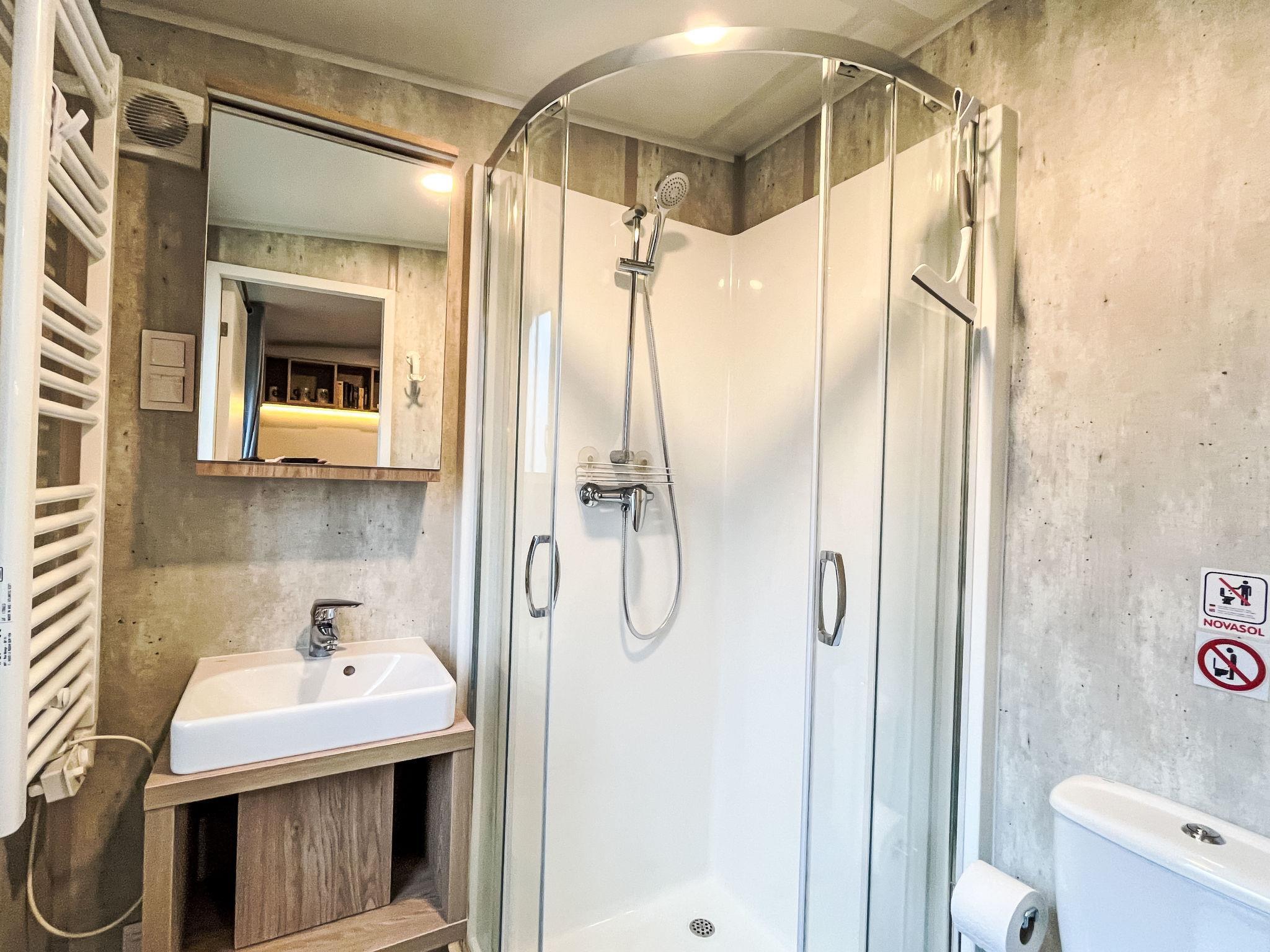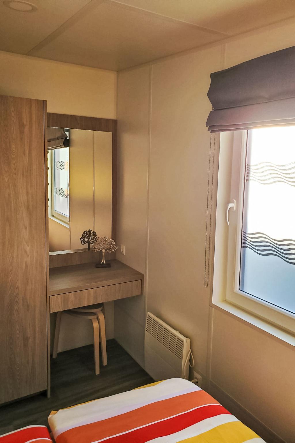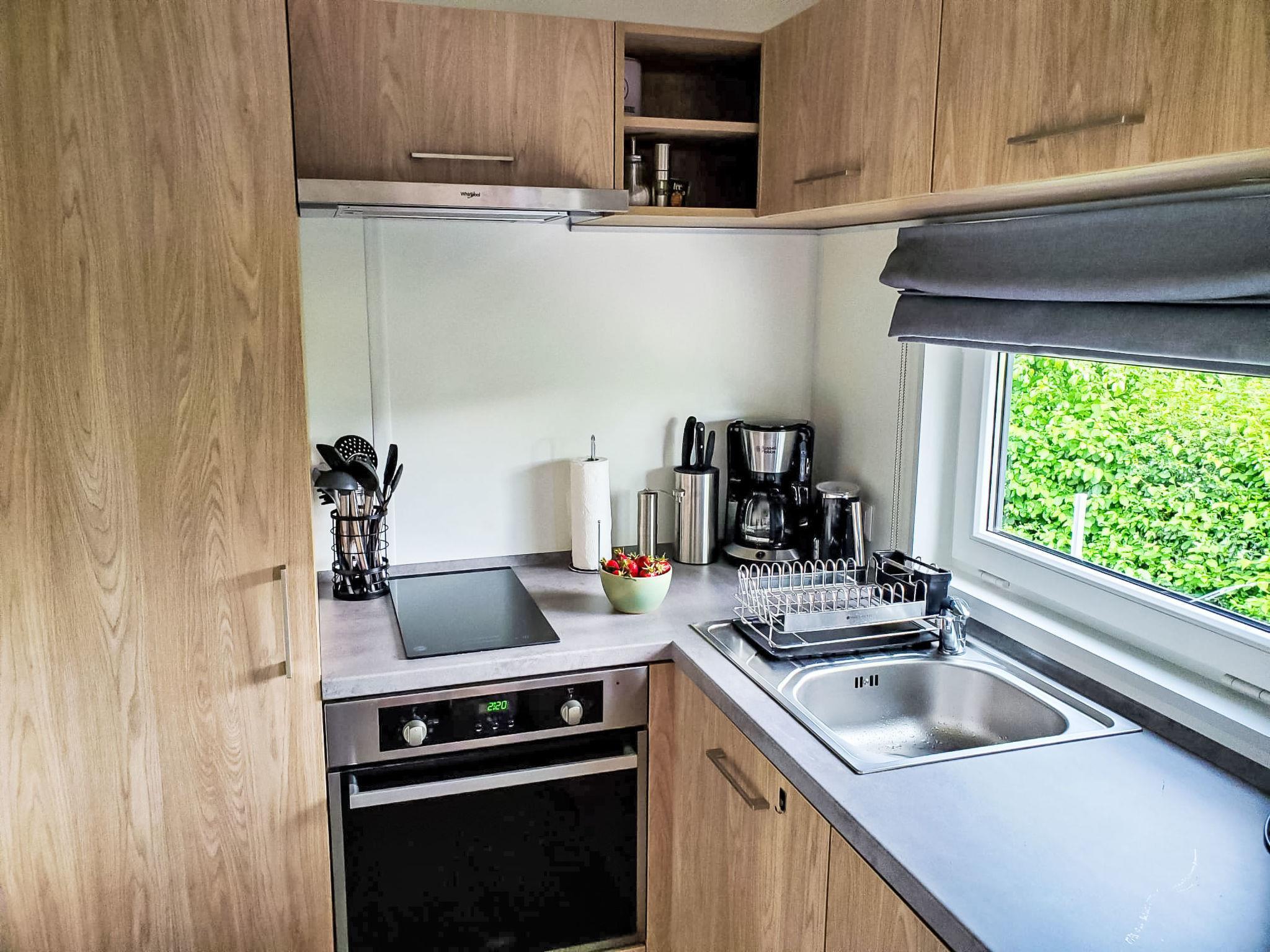 "Tiny Haus Lieblingsplatz", 2-room mobile home 25 m2. Object suitable for 2 adults + 2 children. Cosy furnishings: living/sleeping room with 1 double sofabed and satellite TV. Exit to the terrace. 1 room with 1 french bed (140 cm, length 200 cm). Open kitchen (oven, 2 induction hot plates, toaster, kettle, electric coffee machine). Shower/WC. Electric heating, air-conditioning. Terrace furniture, barbecue. Facilities: Internet (WiFi, free). Parking space n 153 at 20 m. Please note: non-smoking house.