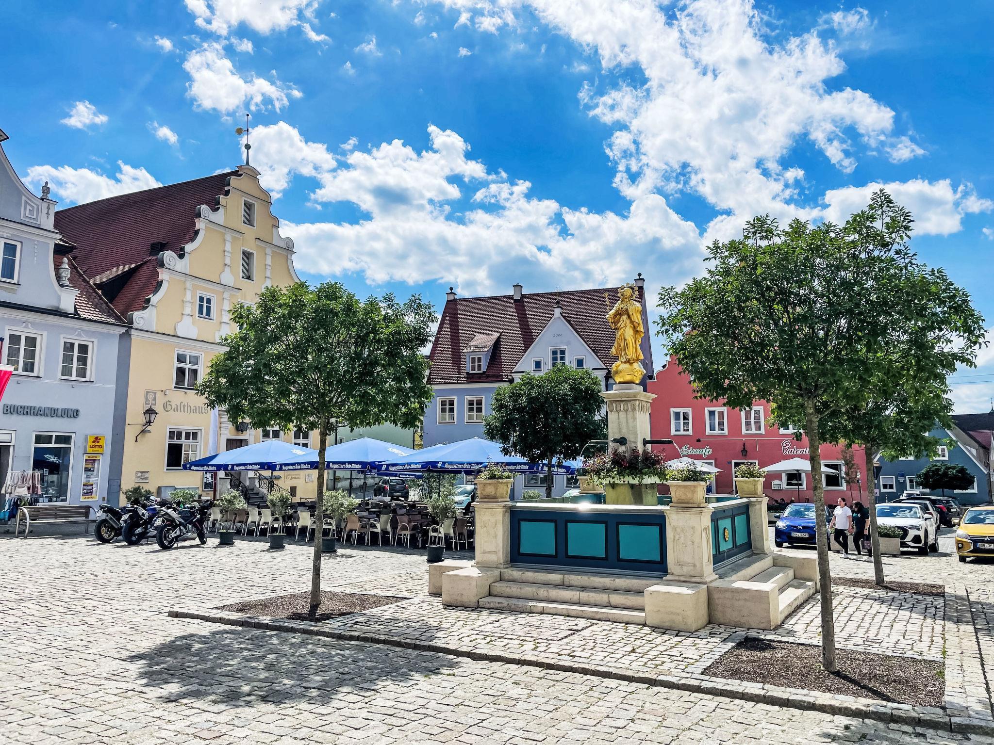 Resort "Campingpark Wemding". 50 houses in the resort. Outside the resort, 2 km from the centre of Wemding, 50 m from the lake. For shared use: slide, outdoor shower, beach volleyball, children's playground, bathing place. In the complex: WiFi, kiosk. 400 m long motor access to the house. Central parking spaces. Supermarket 2 km, restaurant 2 km, bus stop "Johannisgraben-Wemding" 2.2 km, railway station "Nördlingen" 20 km, thermal baths "Treuchtlingen" 21 km. Tennis 1 km, minigolf 50 m, riding stable 1 km, ice rink 500 m. Nearby attractions: Nördlingen / Rieskrater-Museum 19 km, Dinkelsbühl 43 km, Legoland Günzburg 80 km, Playmobil-FunPark bei Nürnberg 100 km, Augsburg 70 km, München 130 km. Well-known lakes can easily be reached: Altmühlsee 35 km, Brombachsee 40 km. Please note: suitable for families. Residence with electric gates. Access to the house only possible between 7 am and 10 pm. Dogs are not allowed on the beach and sunbathing lawn. Kiosk only open from mid may to mid september.