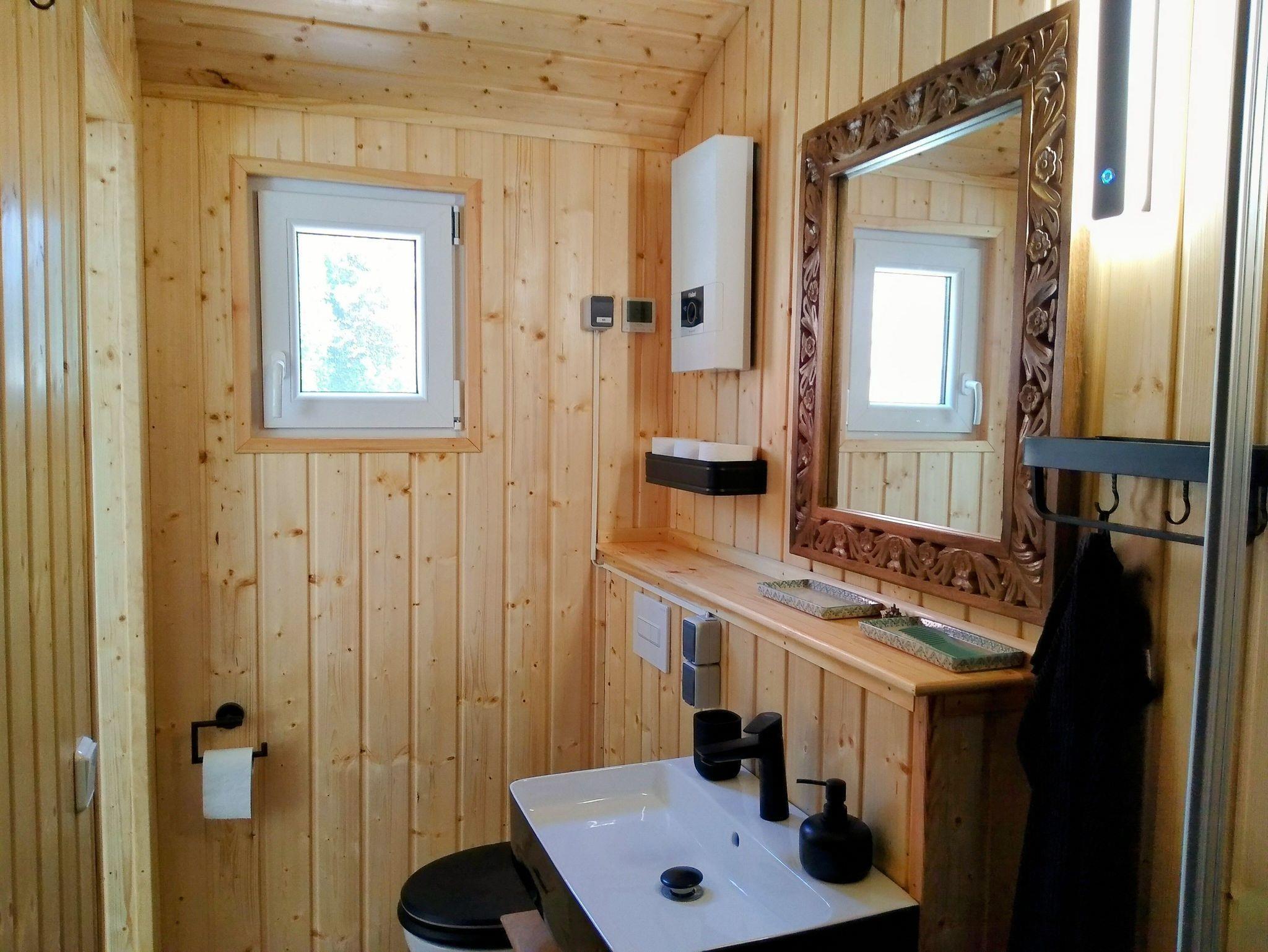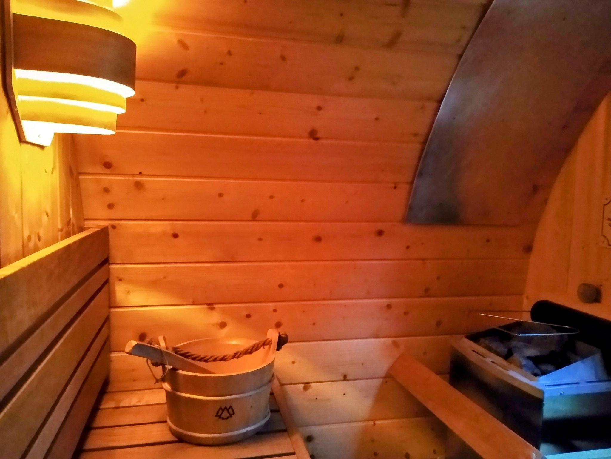 eine kleine Sommerküche ein und lassen Sie den Tag bei einem gemütlichen Grillabend ausklingen. Nutzen Sie Ihren eigenen Bereich unseres naturbelassenen Gartens und entschleunigen Sie an heißen Tagen im Schatten einer großen Kastanie. Verbringen Sie romantische Abende vor knisterndem Kaminfeuer und wärmen Sie sich an kalten Herbst- und Winterabenden im Badefass oder in der Sauna auf. In Ihrer Unterkunft können Sie als alternative Heizmöglichkeiten zum Holzofen auf die Heizfunktion der Klimaanlage oder eine Infrarotheizung zurückgreifen. Diese können wir aus der Ferne steuern, so dass Sie in der kalten Jahreszeit in einem bereits vorgeheizten Bauwagen ankommen.