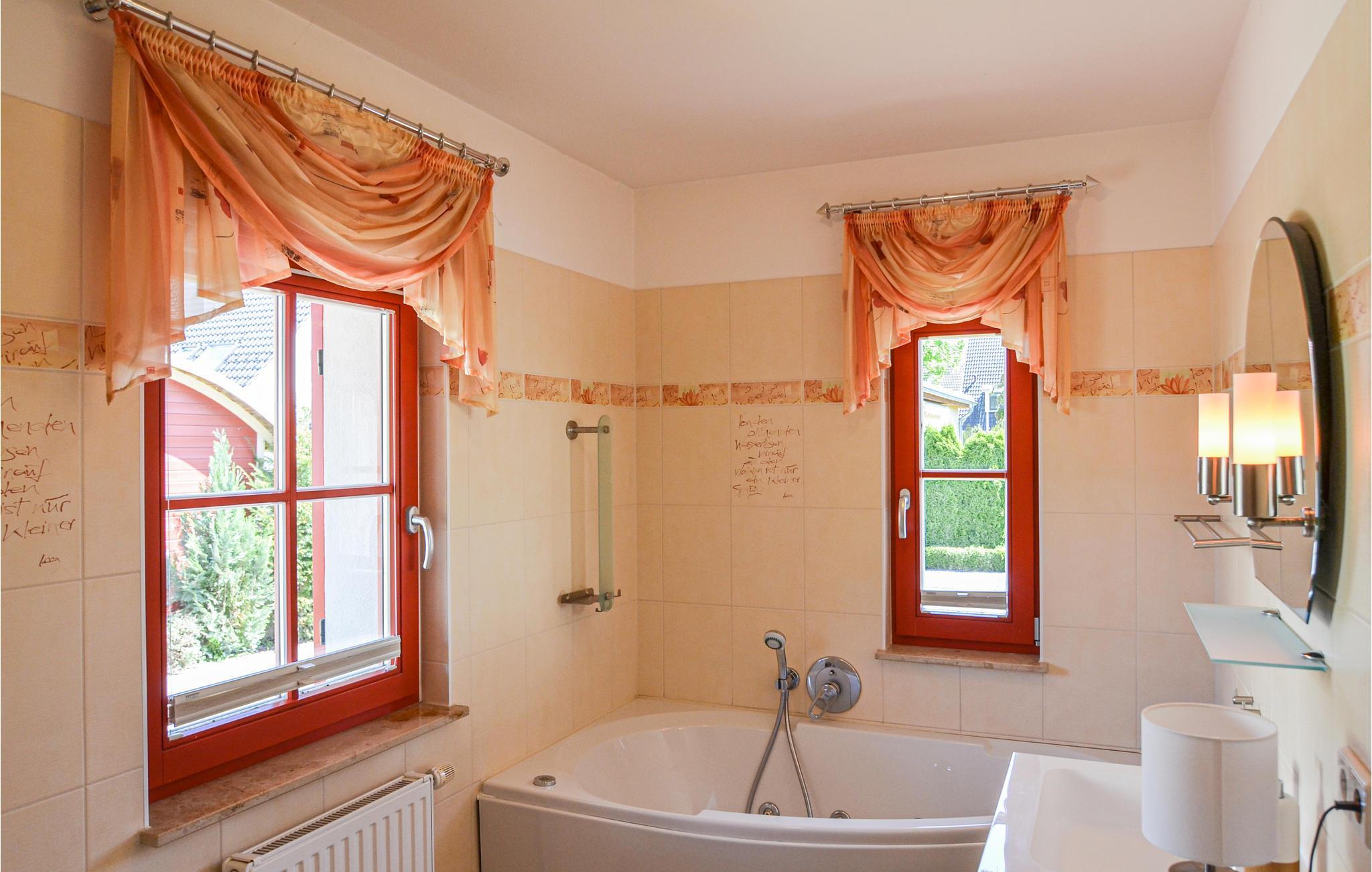Hochwertige Gartenmöbel, ein Strandkorb, Sonnenliegen und ein Grill stehen Ihnen zur Verfügung. Starten Sie Ihren Tag mit einem guten Frühstück auf der Terrasse und lassen sie diesen mit einem geselligen Grillabend wieder ausklingen. Das helle Bad verfügt über einen Whirlpool und in der hauseigenen Sauna können Sie es sich auch an kühleren Tagen gemütlich machen. Hier können Sie durchatmen und entspannen. Über eine Wendeltreppe gelangen Sie ins hübsch gestaltete Obergeschoss mit Dachschrägen, indem Sie ein geräumiges Schlafzimmer mit einem Doppelbett sowie ein weiteres Schlafzimmer mit zwei Einzelbetten vorfinden.