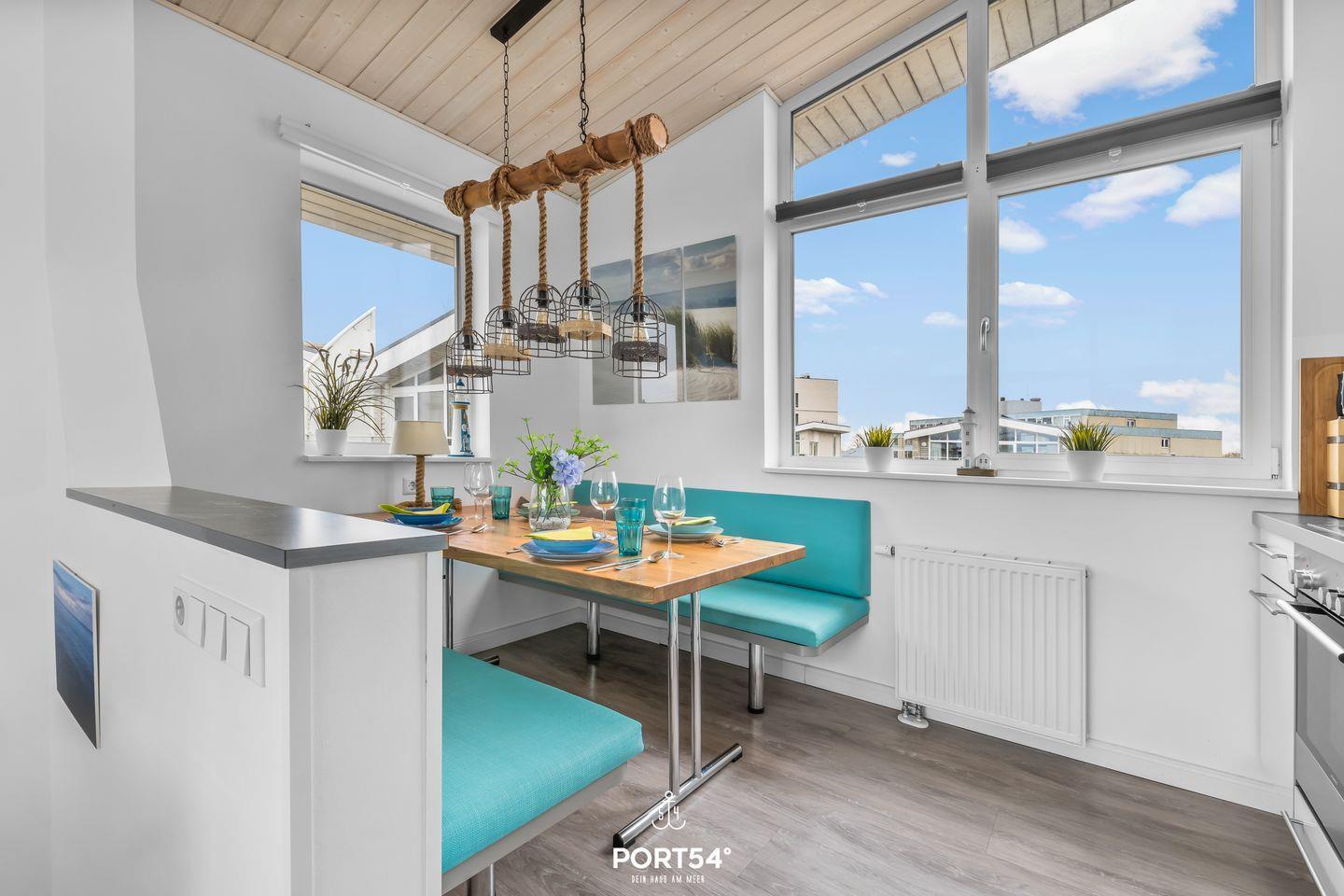 Freuen Sie sich auf einen einzigartigen Meerblick vom Sofa, Sessel oder dem gemütlich eingerichteten Balkon und beobachten Sie die großen und kleinen Schiffe, die nach Kiel und in den Nord-Ostsee-Kanal ein- und auslaufen. Ein großer Spaß für große und kleine Urlauber. Im Obergeschoss erwartet Sie durch bodentiefe Fenster ein offener, lichtdurchfluteter Wohn- und Essbereich mit geschmackvoller, maritimer Einrichtung. Der gemütliche Wohnbereich bietet ein komfortables Ecksofa, einen Drehsessel mit Fußhocker für entspannte Momente, einen großen 50-Zoll-SmartTV, einen Bioethanol-Kamin und den den Zugang zum Balkon. Auch von der Essecke aus genießen Sie den herrlichen Meerblick. Die hervorragend ausgestattete Küche mit Induktionskochfeld und umfangreichem Kücheninventar lädt zum Kochen ein. Für Kaffee- und Espressoliebhaber gibt es sowohl eine Kaffee- als auch eine Nespressomaschine und als kleines Highlight einen Milchaufschäumer für herrlichsten Cappuccino, mit dem selbstverständlich auch eine heiße Schokolade zubereitet werden kann. Die vorhandene Klimaanlage verspricht ein angenehmes Innenraumklima an heißen Sommertagen.