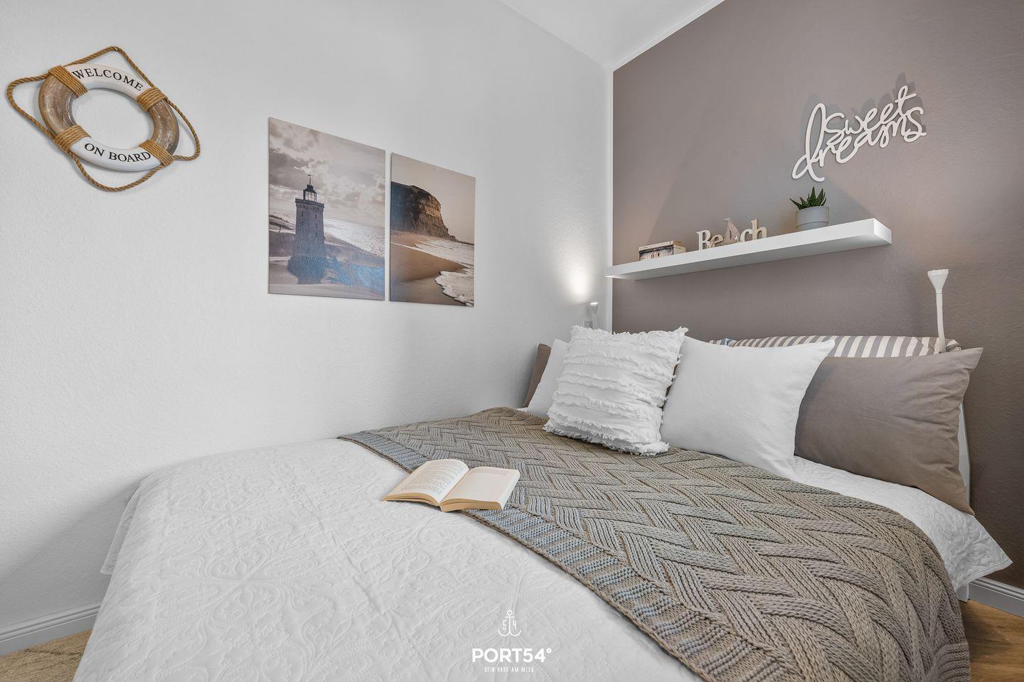 Die Wohnung befindet sich im 6. Stock und beeindruckt mit einem außergewöhnlich guten Meerblick, der Ihnen bereits beim Aufwachen den Atem rauben wird. Genießen Sie die frische Meeresluft, während Sie den Sonnenaufgang über der Ostsee beobachten. Die lichtdurchfluteten Räumlichkeiten sind geschmackvoll eingerichtet und bieten Ihnen eine gemütliche Atmosphäre. Der offene Wohnbereich mit einer komfortablen Sofaecke (Schlafcouch) lädt zum Entspannen ein und ist mit einem 48-Zoll-Fernseher sowie einer HiFi-Anlage ausgestattet. Ein extra Schlafzimmer, das durch eine verschließbare Tür vom Wohnraum abgetrennt ist verfügt über ein Doppelbett.