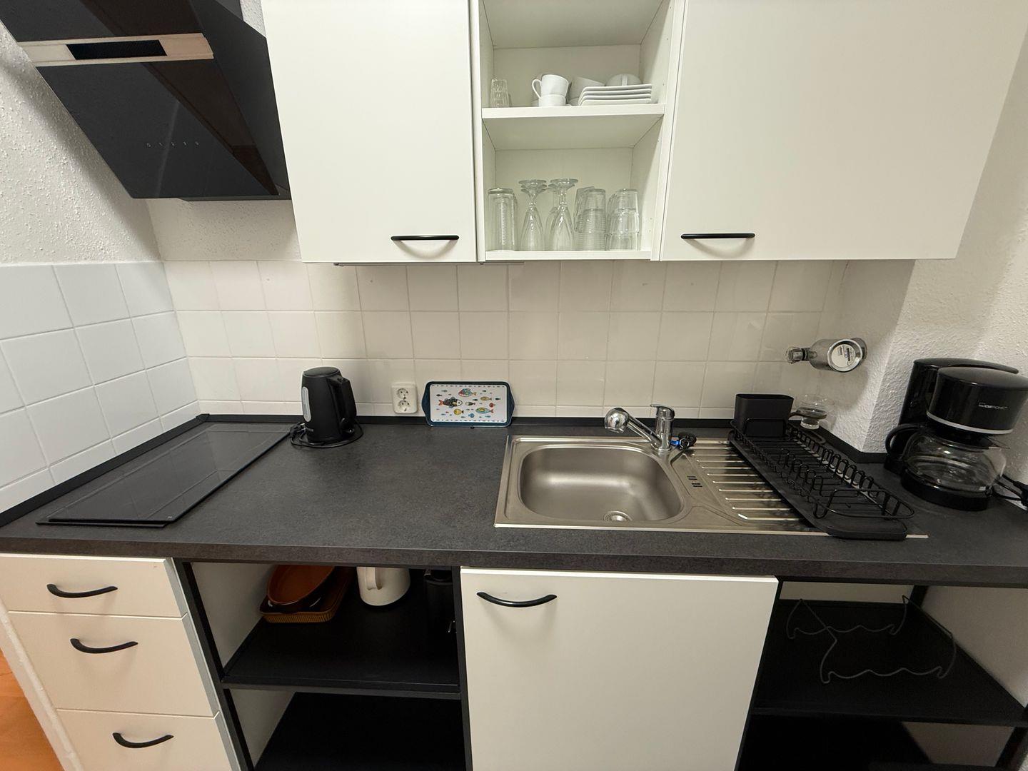 Die kleine, gut ausgestattete Küche mit Essplatz lädt dazu ein, nach Herzenslust zu kochen und gemeinsame Mahlzeiten zu genießen. Der Flur mit Garderobe sorgt dafür, dass alles seinen Platz hat, und das moderne Bad mit Dusche und WC macht deinen Aufenthalt rundum komfortabel.