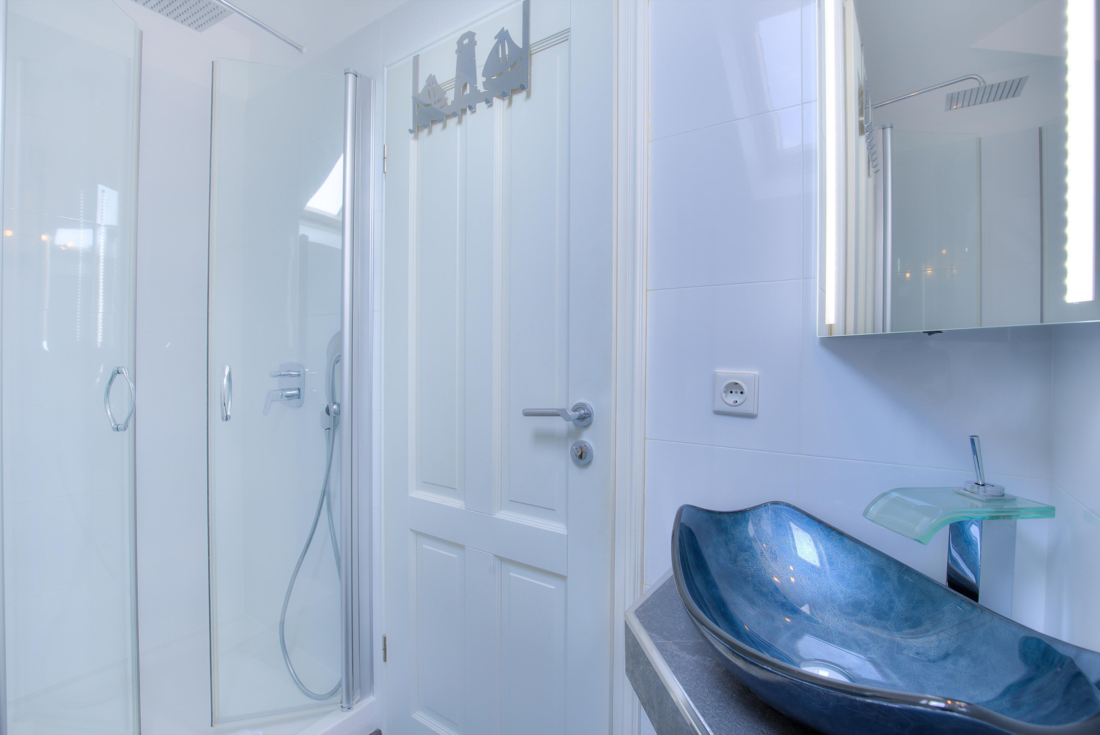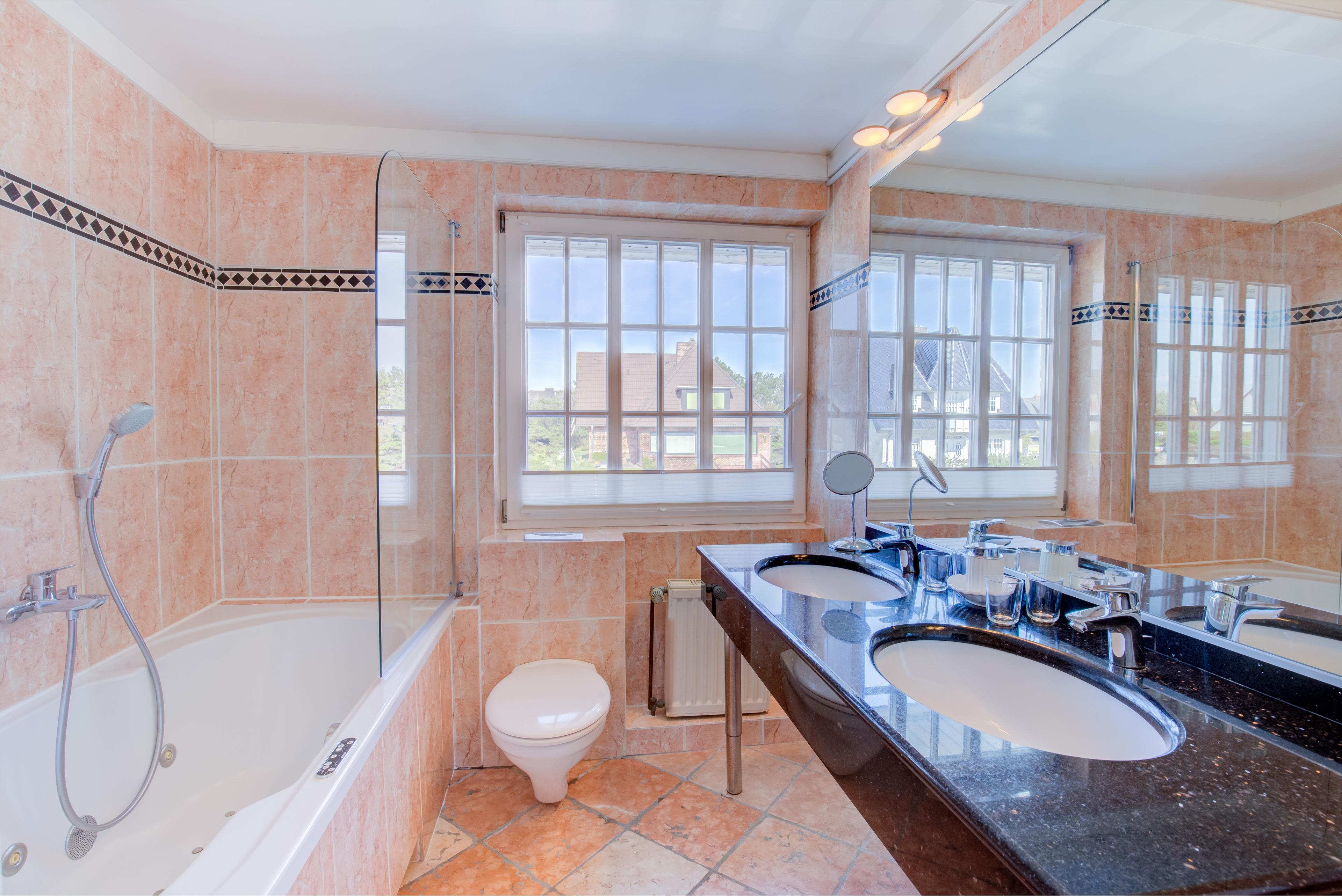 Die Sylter Sonnenstunden genießen Sie auf dem Süd-Westbalkon. Das erste der drei Schlafzimmer, sowie ein Bad mit Whirlpool befinden sich auf dieser Ebene.