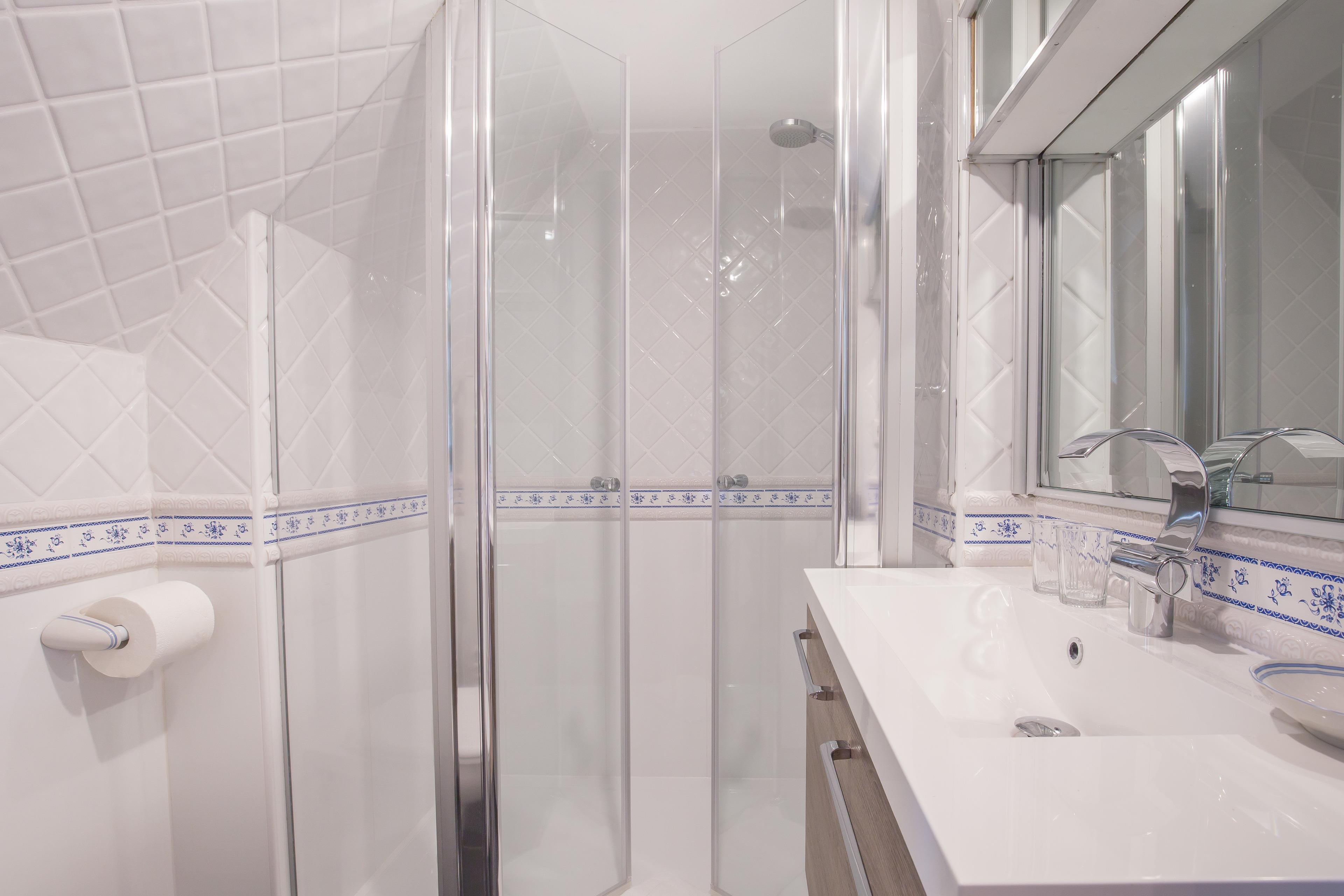 Ebenfalls im Erdgeschoss befindlich sind das große behindertenfreundliche Duschbad und das behagliche Doppelschlafzimmer mit Blick auf den ruhigen Terrassenbereich. Über die gut begehbare Treppe erreichen Sie zwei weitere Schlafzimmer mit jeweils eigenem Duschbad.