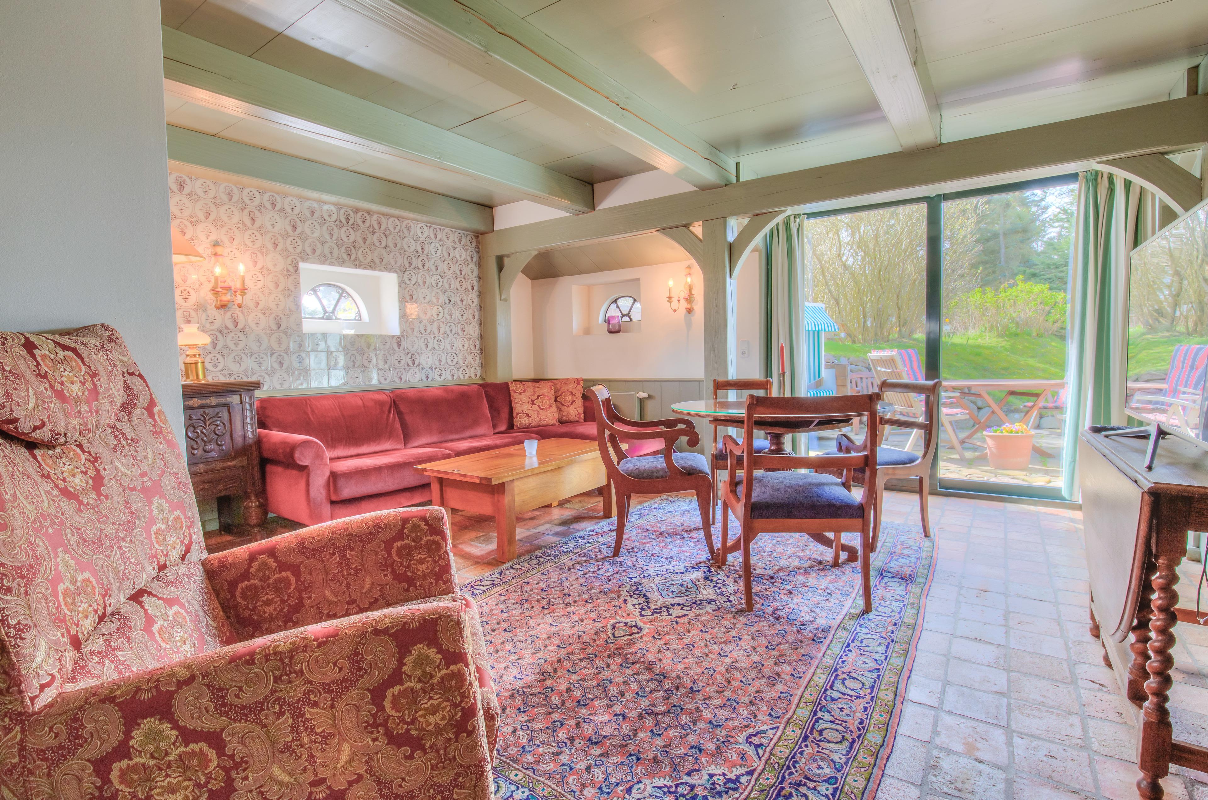 Stilecht auf Sylt unter Reet urlauben in dieser 84m² großen 3 Zimmer-Ferienwohnung im friesischen Stil.