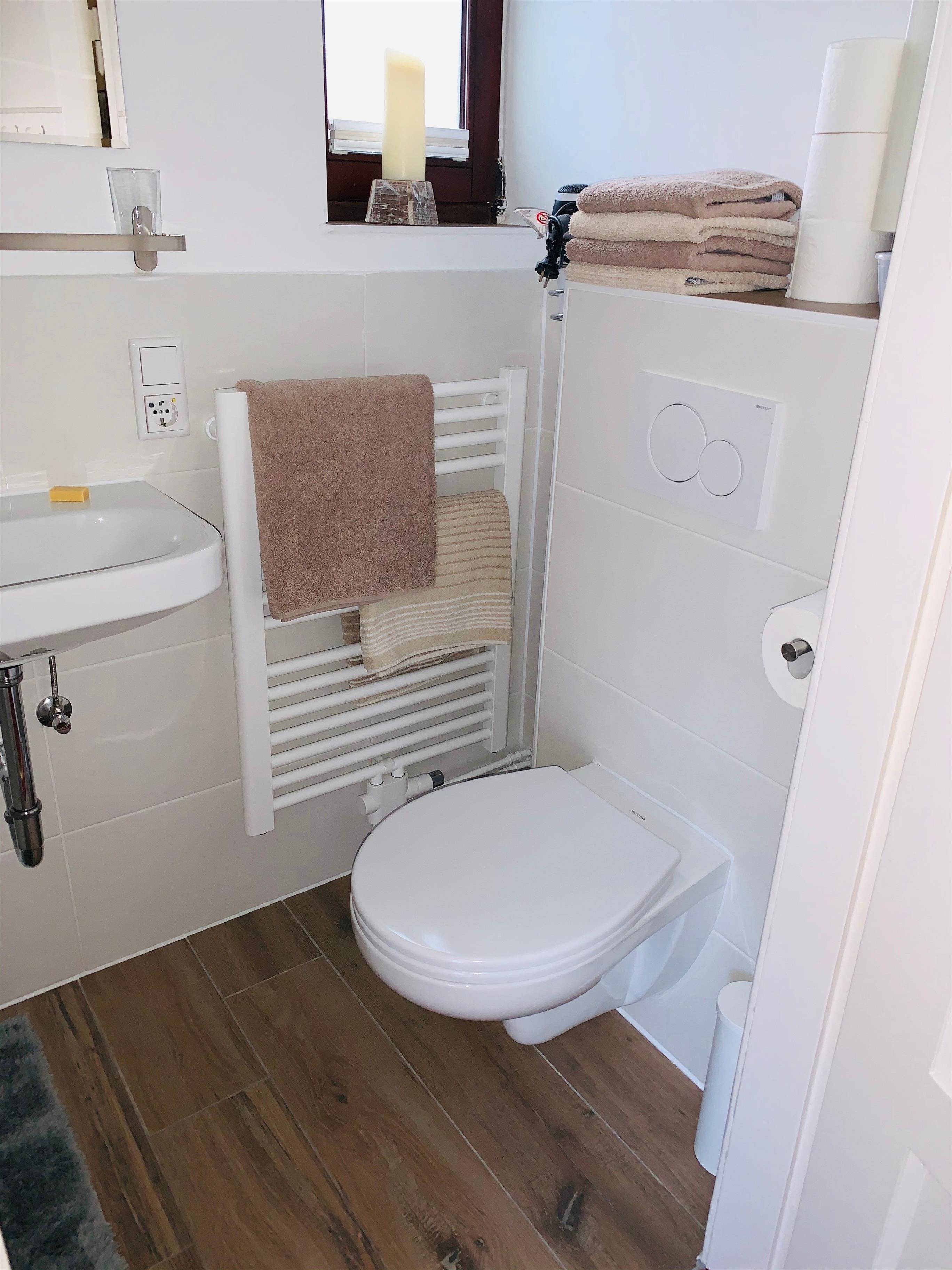 Das Bad ist 2019 komplett renoviert worden. Die Schlafcouch mit echtem Lattenrost ist in diesem Zug auch erneuert worden. Eine Erstausstattung Bettwäsche und Handtücher ist im Preis inbegriffen (ansonsten Selbstversorger).