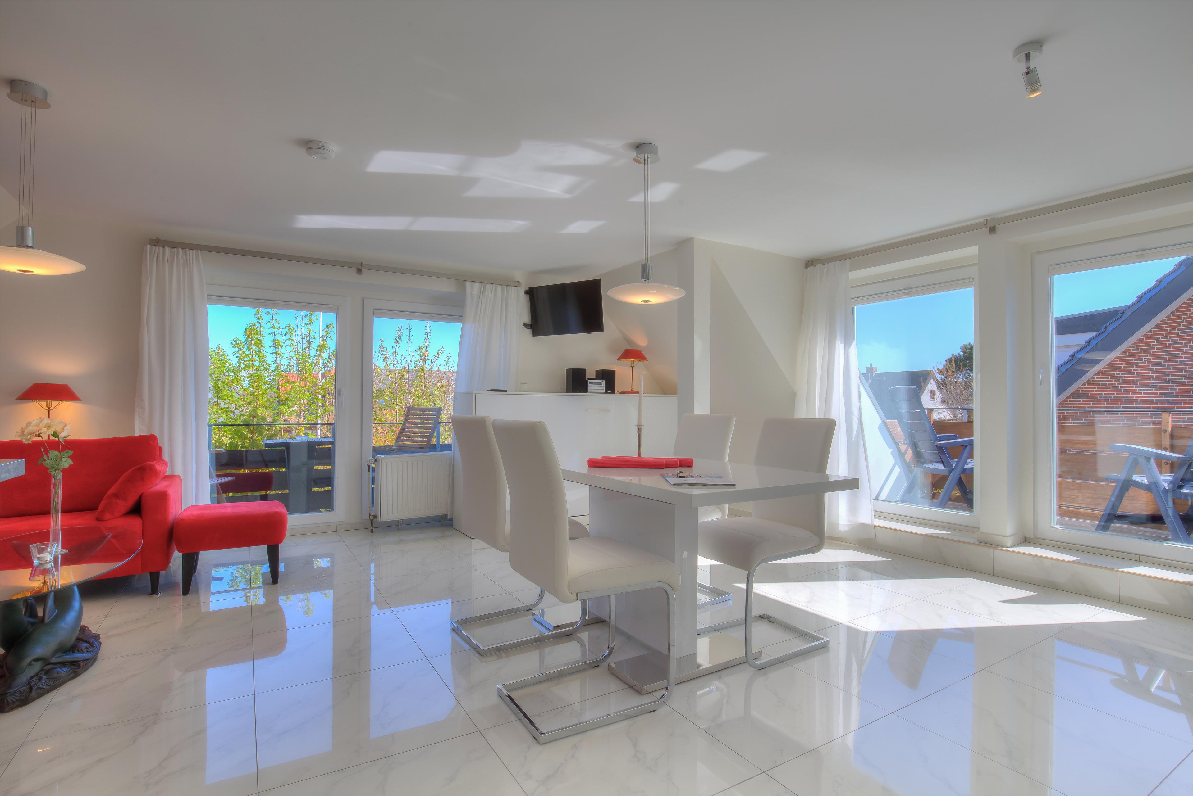 Treten Sie von hier hinaus auf den großen Süd-Ostbalkon oder genießen Sie die Sylter Sonnenstunden vom separaten Südbalkon.