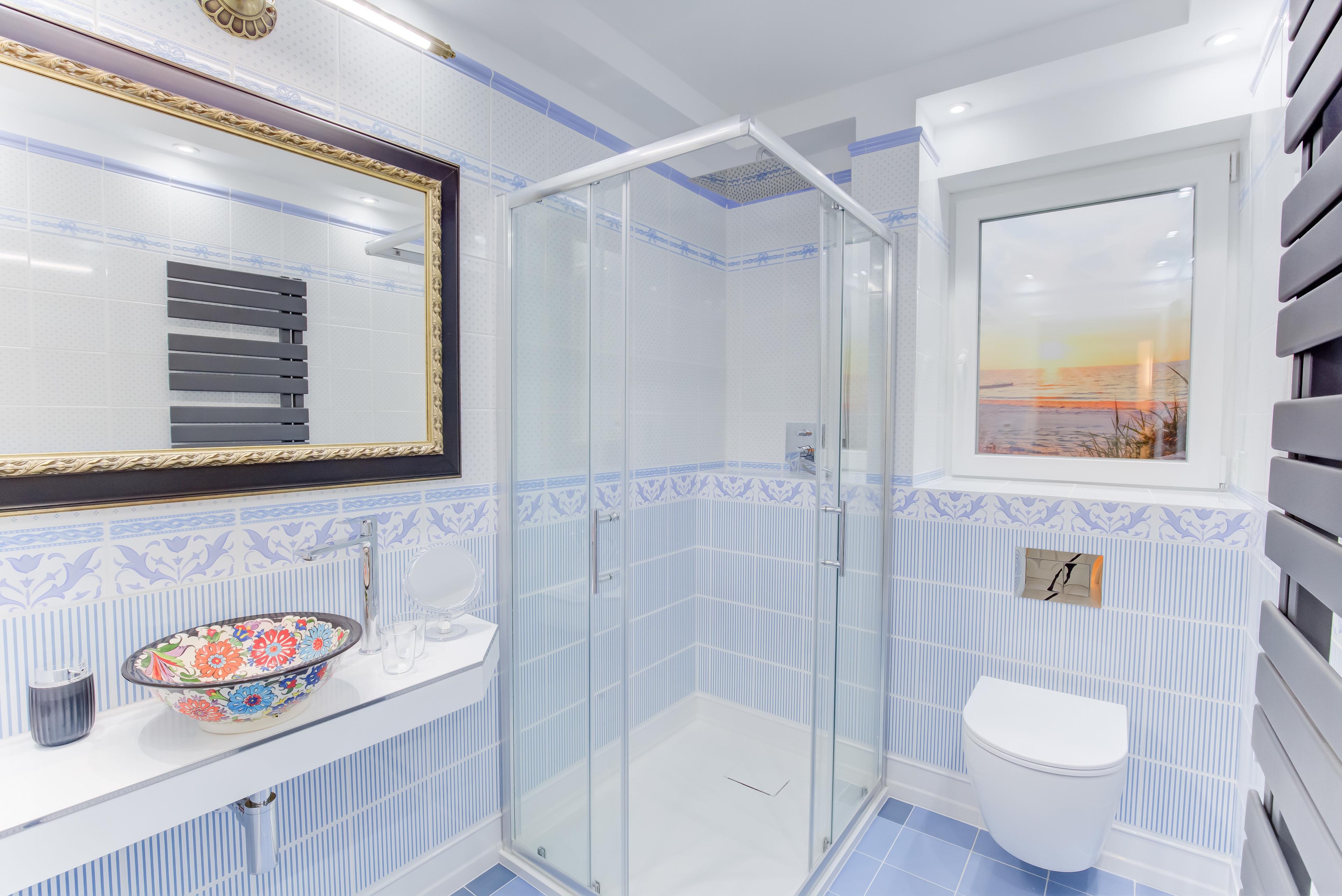 Entdecken Sie am Rande einer naturgeschützten Heidefläche mit traumhaftem Meeresblick diese idyllische Wohnanlage mit der komfortabel eingerichteten Ferienwohnung "Haus am Meer – F3" auf 2 Ebenen und 80m² Wohnfläche. Einen fantastischen Blick über die Heidelandschaft können Sie von der schönen Südterrasse mit Strandkorb und Gartenmöbeln genießen. Im Erdgeschoss erwartet Sie ein ca. 25m² großer, lichtdurchfluteter Wohn-/Essbereich. Eine große, separate Küche mit Markengeräten und ein Gäste-WC ergänzen das EG. Im Untergeschoss der "Haus am Meer – F3" befinden sich die beiden Schlafzimmer mit Doppelboxspringbetten, welche jeweils über ein eigenes Duschbad verfügen.