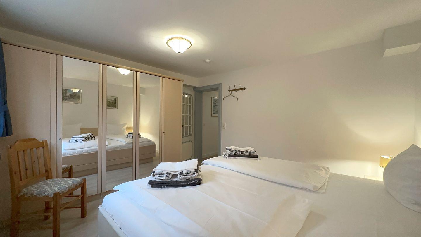 Schlafzimmer 2: Großes Schlafzimmer mit Doppelbett, großem Schrank und einem Fenster.