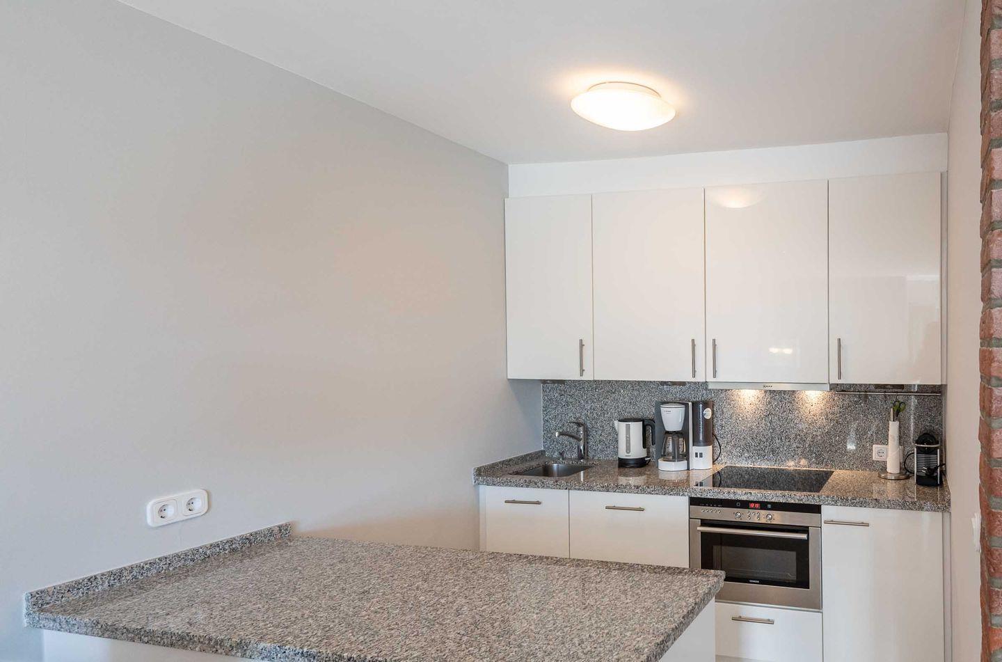 Küche: Moderne, offene Einbauküche mit vielen Extras und gemütlichem Essplatz.