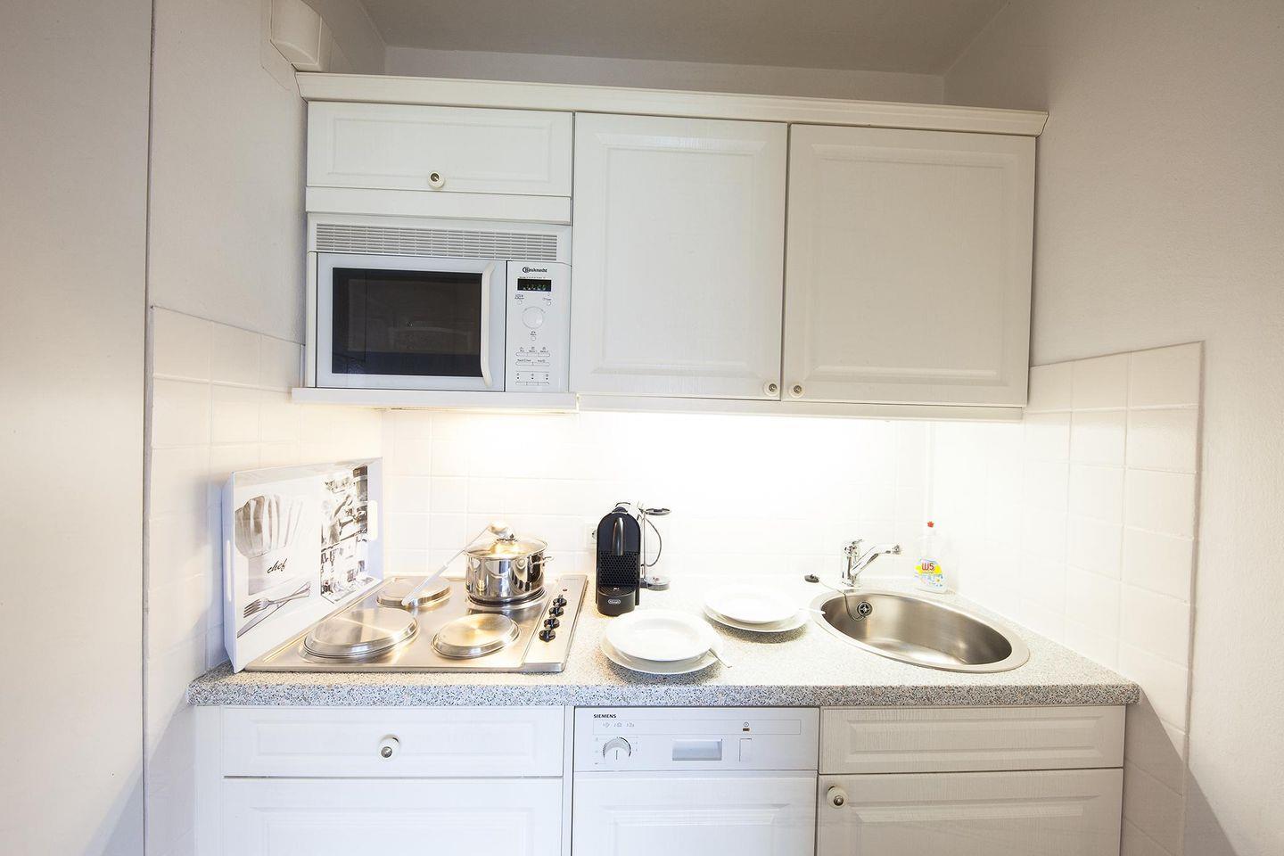 Koch-/Wohn-/Essbereich: Zur Sonnenseite ausgerichtet liegt der helle Wohnraum mit einem gemütlichem Schlafsofa, modernem TV sowie der geschickt integrierten Küche. Sie genießen Ihr Frühstück am Esstisch oder auf dem möblierten Süd-West-Balkon mit Blick in den Garten.