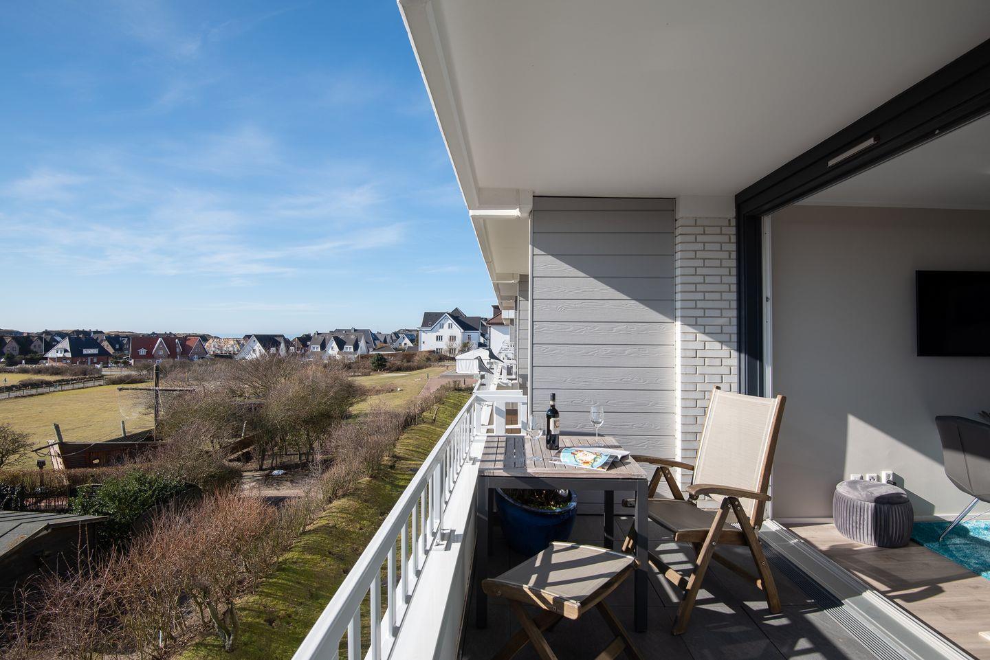 Moderne Zweiraum-Wohnung mit herrlichem Weitblick über Wenningstedt vom Südbalkon. Appartement MEERzeit verfügt ca. 50 m² Wohnfläche für bis zu 2 Personen.