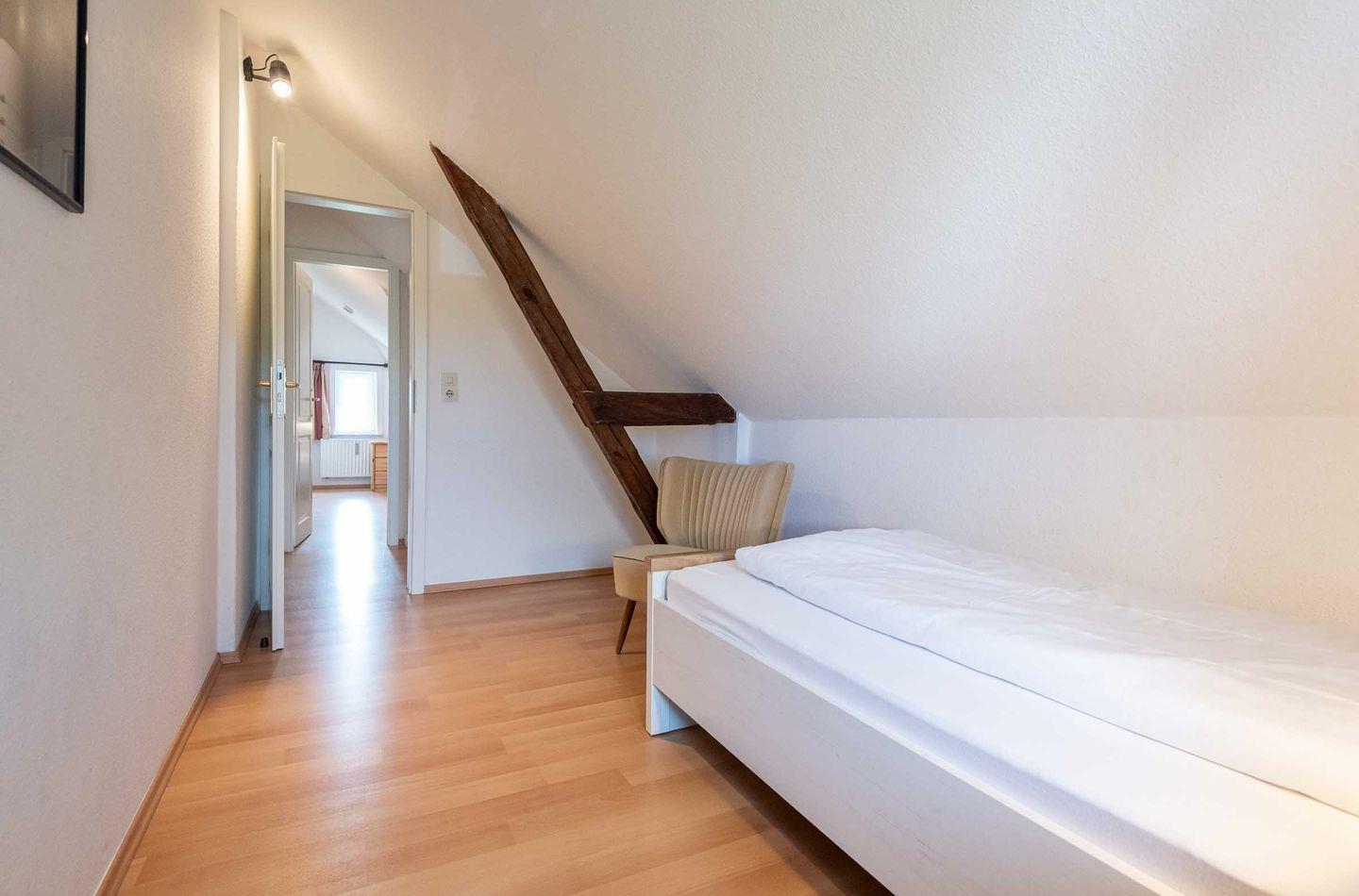Schlafzimmer 2: Schlafraum mit einem Einzelbett und Fenster.