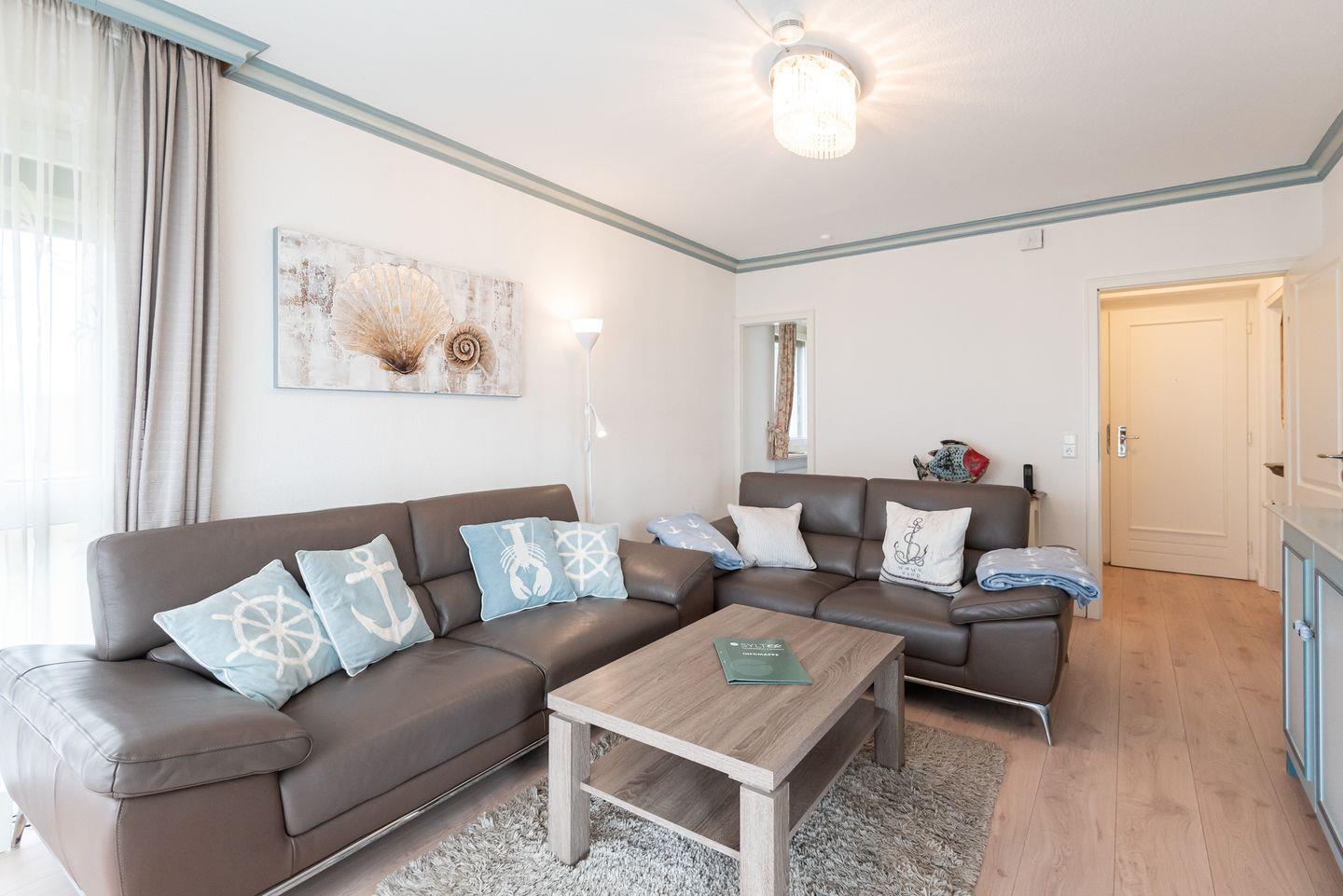 Hier wohnen Sie direkt am Meer. Diese gemütliche Ferienwohnung im Haus "Schloss am Meer" ist im modernen Landhausstil gestaltet.