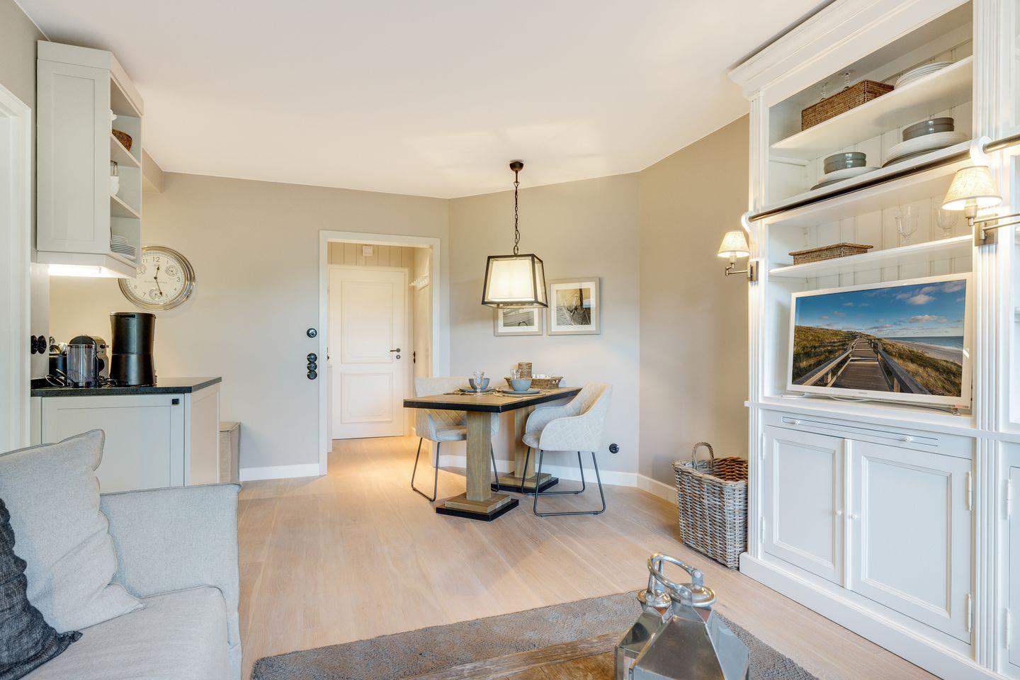 Entdecken Sie die Kleine Künstlerdeele App. 13 im Witthüs – Ihre ideale Ferienwohnung auf Sylt! Diese charmante Unterkunft bietet Platz für bis zu zwei Personen und begeistert mit einem gemütlichen Wohnzimmer, einer modernen Küche und einer schönen Terrasse. Genießen Sie die Vorteile eines privaten Parkplatzes und die Nähe zum Strand – nur 1 km entfernt. Die Sauna am Haus sorgt für entspannende Momente nach einem aktiven Tag. WLAN ist ebenfalls vorhanden.