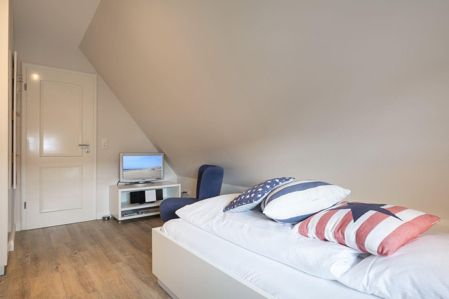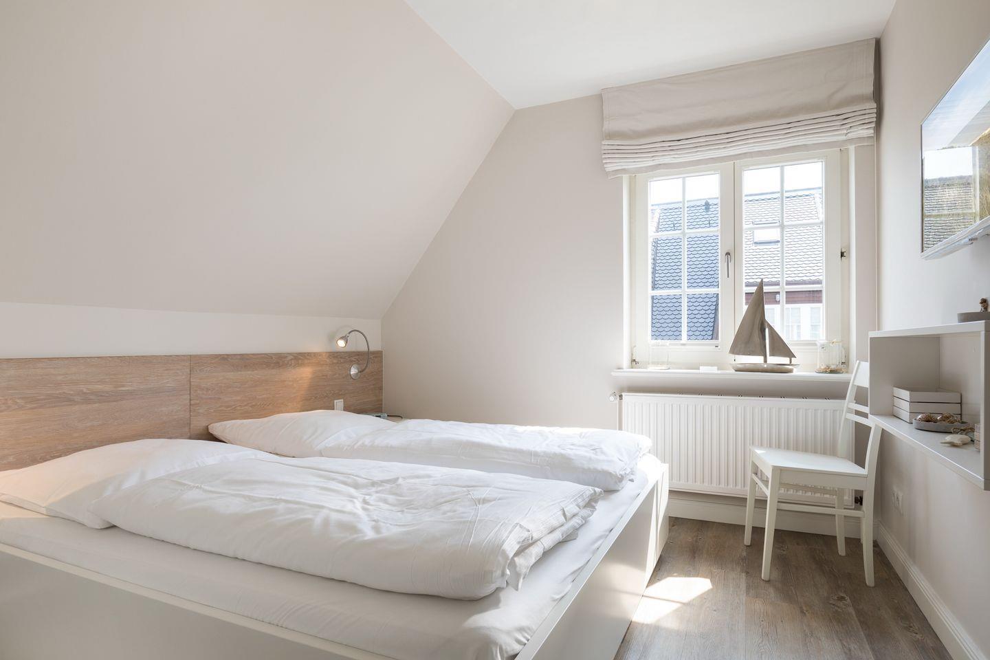 Im kuscheligen Zimmer mit maritimen Flair finden Sie zwei eingebaute Einzelbetten (90 x 200 cm)