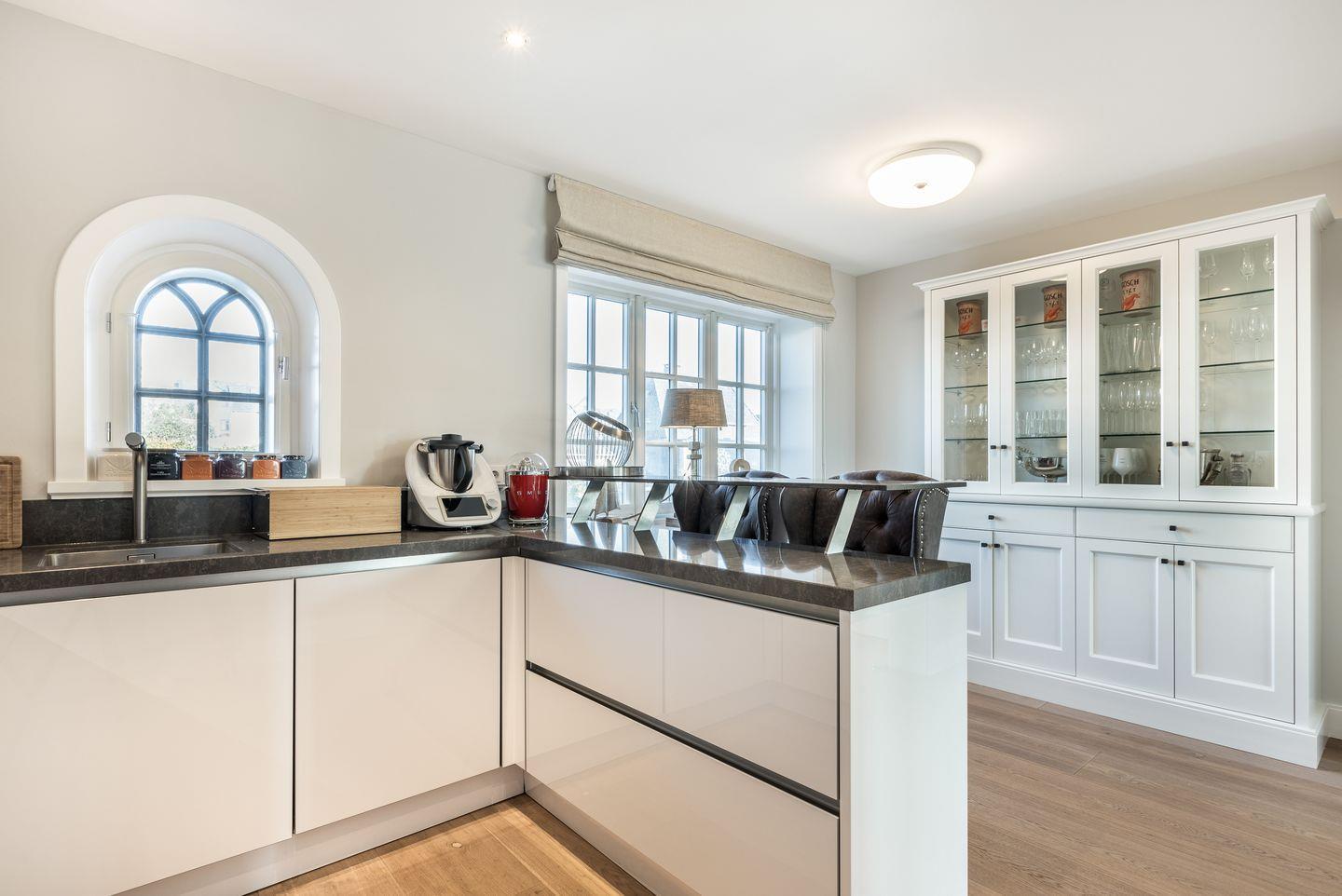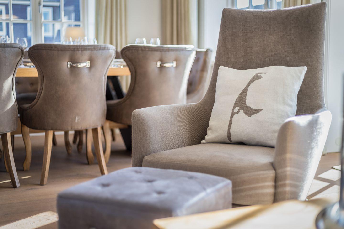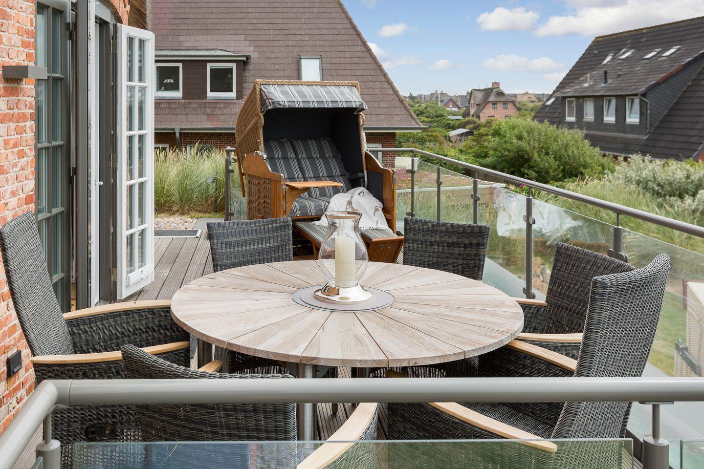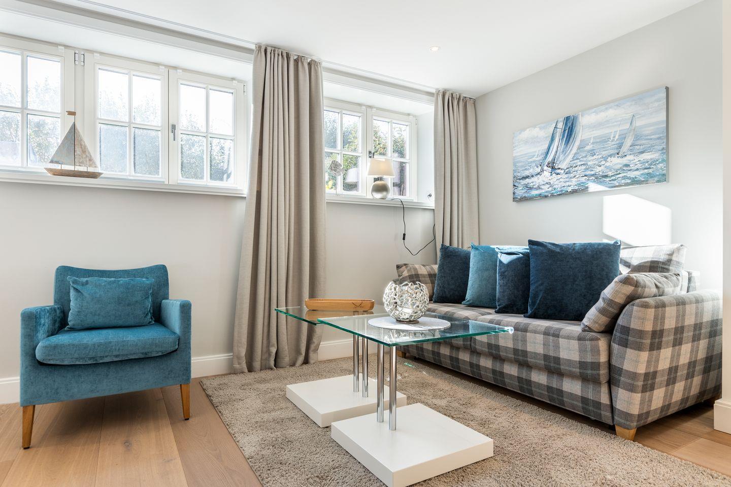Das Erdgeschoss des Hauses empfängt Sie mit einem großen Wohn- und Essbereich. Genießen Sie die gemeinsamen Stunden mit der Familie vor dem Kamin oder kochen Sie sich Ihr Urlaubs-Dinner in der Top-ausgestatteten Küche. Durch Dekoration mit Strandflair und die perfekt abgestimmte Einrichtung des Hauses werden Sie hier gleich am ersten Tag Ihr Sylter Urlaubsgefühl spüren. Vom Wohnzimmer aus haben Sie Zugang auf die große Terrasse des Hauses mit Blick zu der beliebten Wenningstedter Promenade. Im Erdgeschoss finden Sie außerdem einen großzügigen Eingangsbereich mit viel Stauraum und ein Gäste-WC.