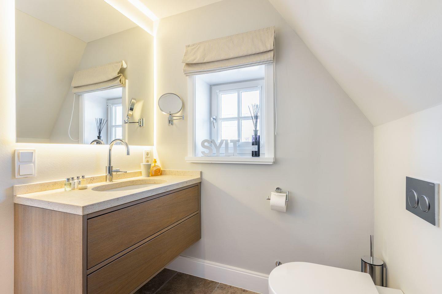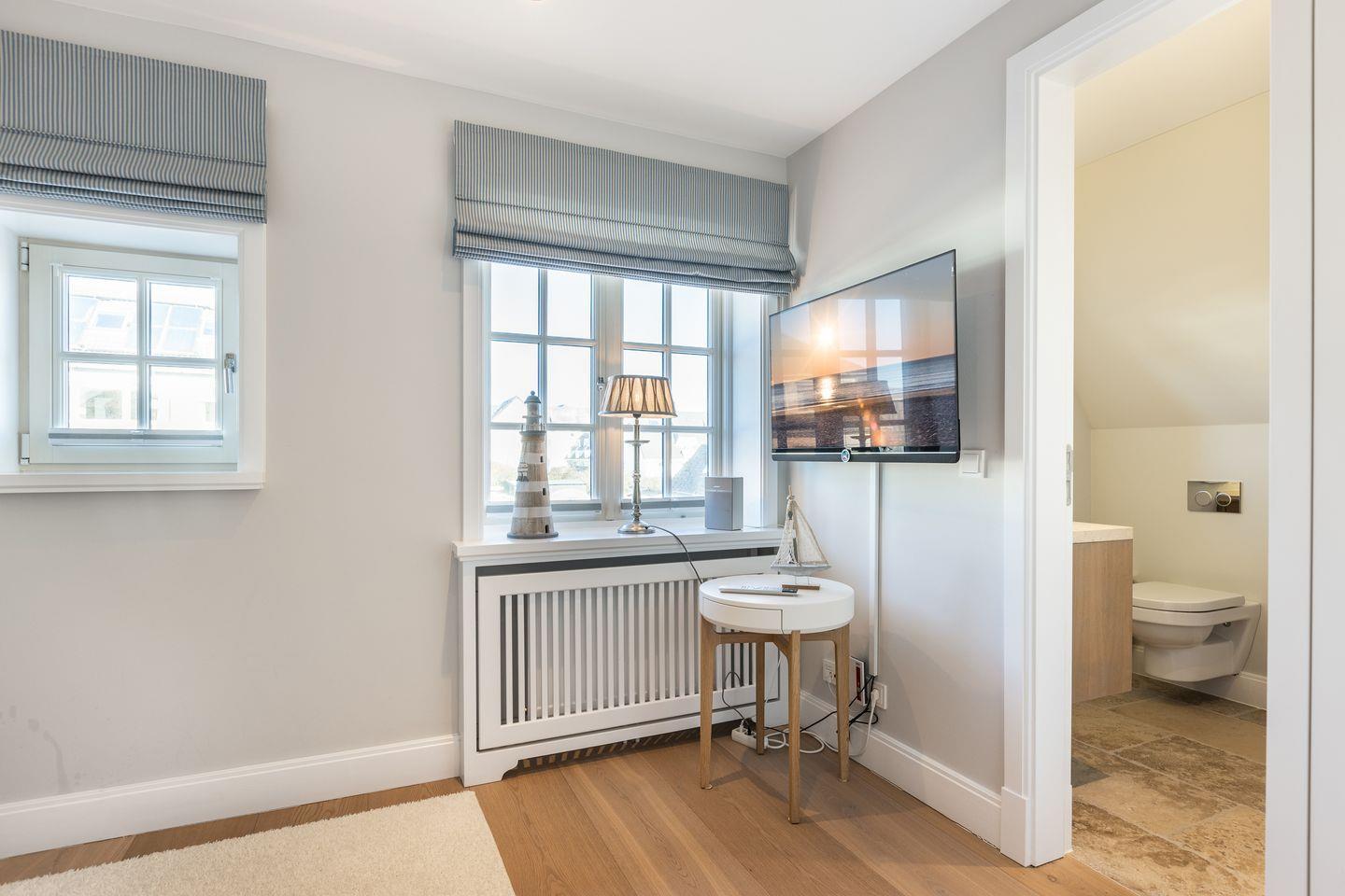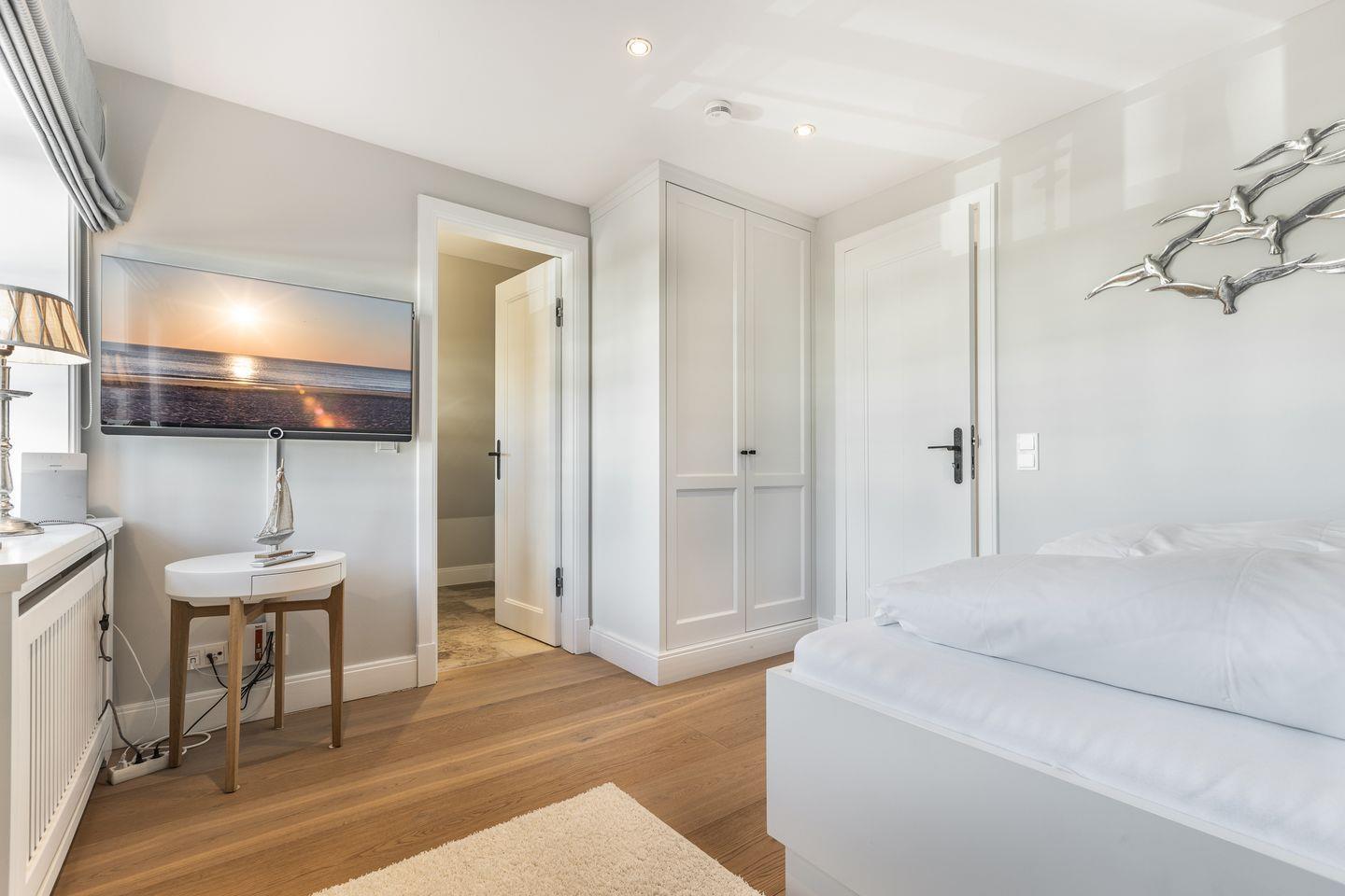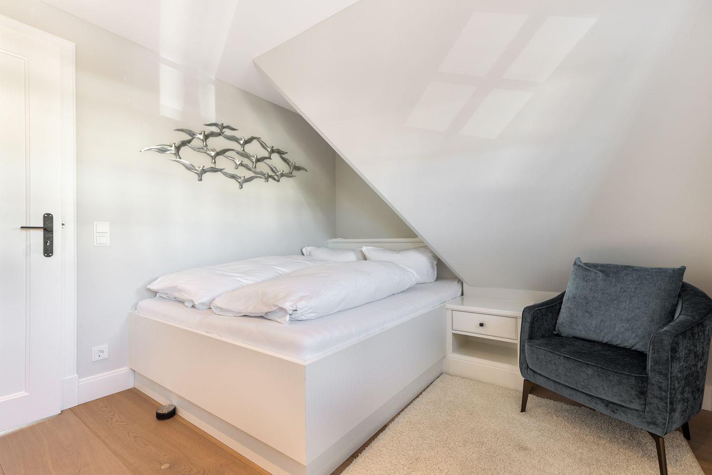 Das Obergeschoss des Hauses verfügt über zwei Schlafzimmer mit jeweils einem Doppelbett und Bad en Suite mit Dusche und WC. Hier werden Ihre Urlaubsträume wahr und Sie wachen am Morgen erholt und gestärkt für das nächste Sylt-Abenteuer auf.