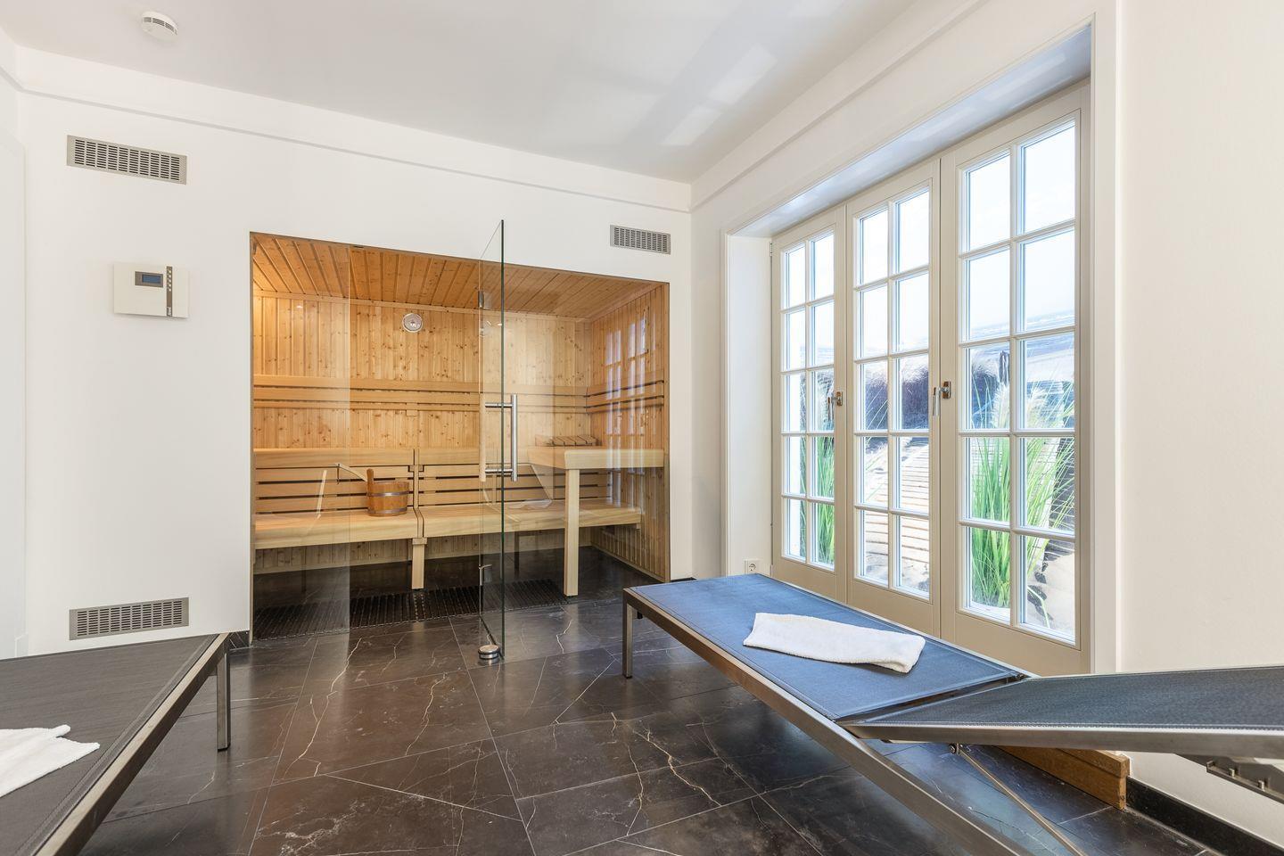 Im Untergeschoss erwartet Sie die hauseigene Sauna für die kalten Tage des Jahres. Durch den raffinierten Schnitt des Gebäudes müssen Sie auch hier nicht auf Tageslicht verzichten. Auf gleicher Ebene finden Sie außerdem ein weiteres Schlafzimmer mit Doppelbett und ebenfalls ein en Suite Bad.