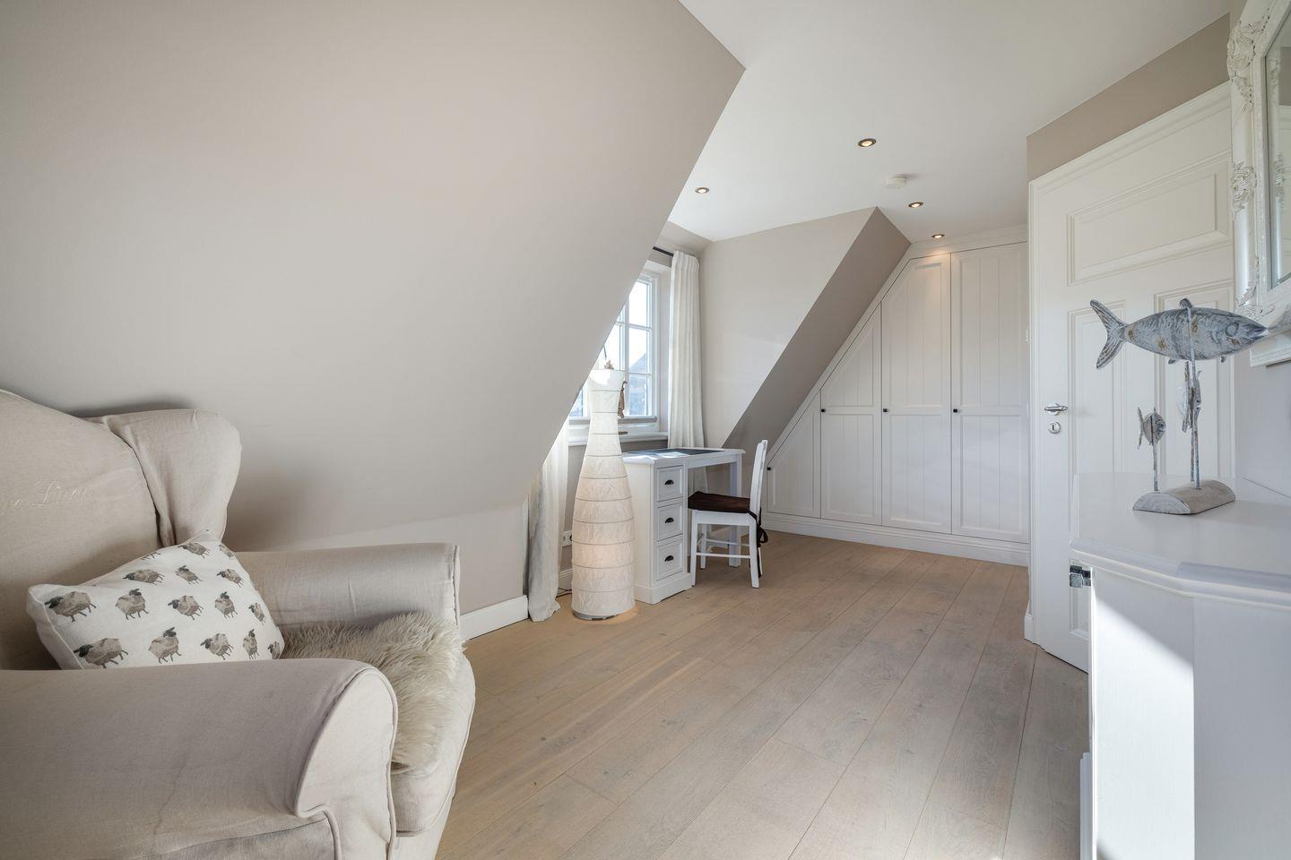 Doch nicht nur die Lage und das Open Air Ihres Logis sind topp, auch die inneren Werte Ihres Sylt-Hues überzeugen auf höchstem Niveau. Die gekalkten Eichendielen verströmen Eleganz und Wohlfühlatmosphäre pur. Ihre eindrucksvolle Küche ist Luxus pur.[nbsp][nbsp]Bei der Möblierung wurde Wert auf Stil, Wertigkeit aber auch Leichtigkeit gesetzt: alles verströmt eine Brise Meer, ist luftig leicht und verkörpert Sylt pur. Luxus: ja. Verstaubt: definitiv nein.