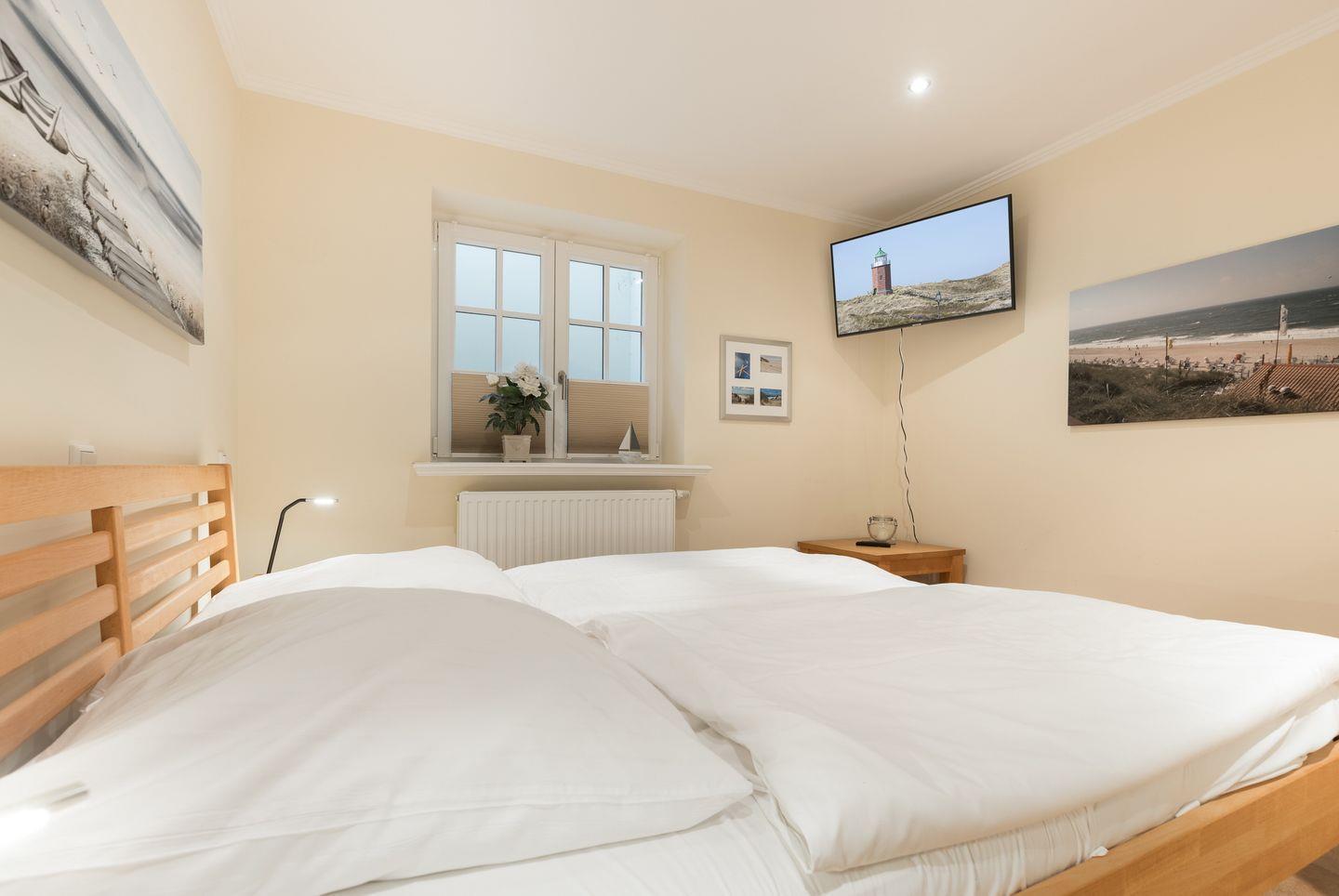 Souterrain: Zwei großzügige und schöne gestaltete Räume mit Doppelbett (1,8x2m) und jeweils einem 40 Zoll Flat-TV. Ein großes Wohlfühlbad mit Wanne, Dusche und WC.