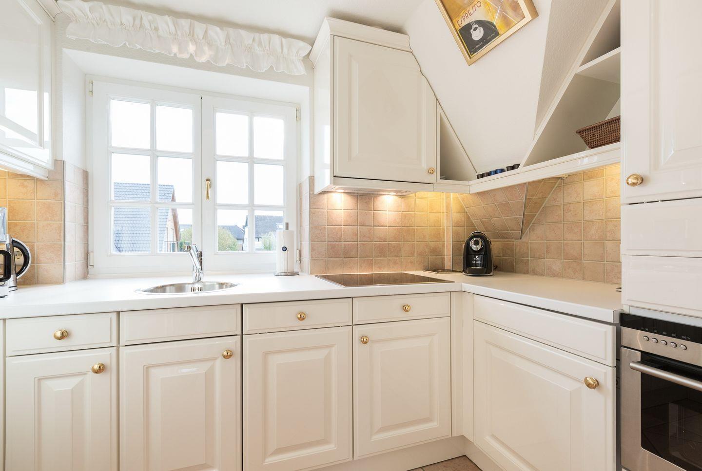 Obergeschoss: geschmackvoll möblierter Wohnraum im eleganten Kolonialstil. Erleben Sie Fernsehen der neuesten Generation: Ultra High Definition TV mit BluRay-Player und Dolby-Sound-System, Telefon, Drucker mit Airprint. Schöne separate Küche mit Geschirrspüler, Nespressomaschine, Backofen mit Microwelle sowie kombinierter Waschmaschine/Trockner.