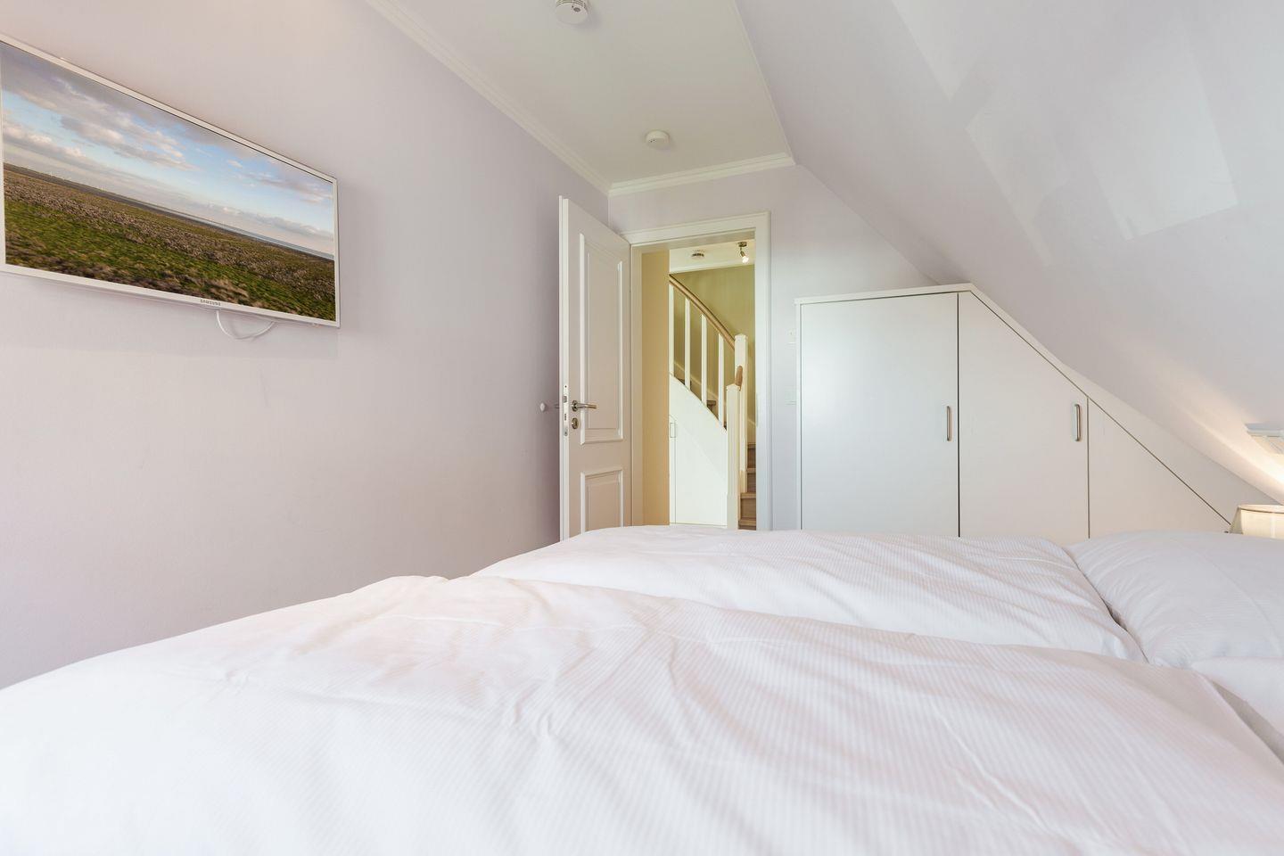 DG: Hier empfängt Sie ein sehr großzügiger Raum mit Doppelbett (ca. 1,8x2m) und, Teufel Radiowecker und Samsung Flat TV. Aus Ihren Veluxfenstern genießen Sie sogar einen kleinen Meerblick. Wohlfühlbad mit Wanne/Dusche und WC. Der Clou: auch aus Ihrer Wanne können Sie einen kleinen Meerblick genießen.