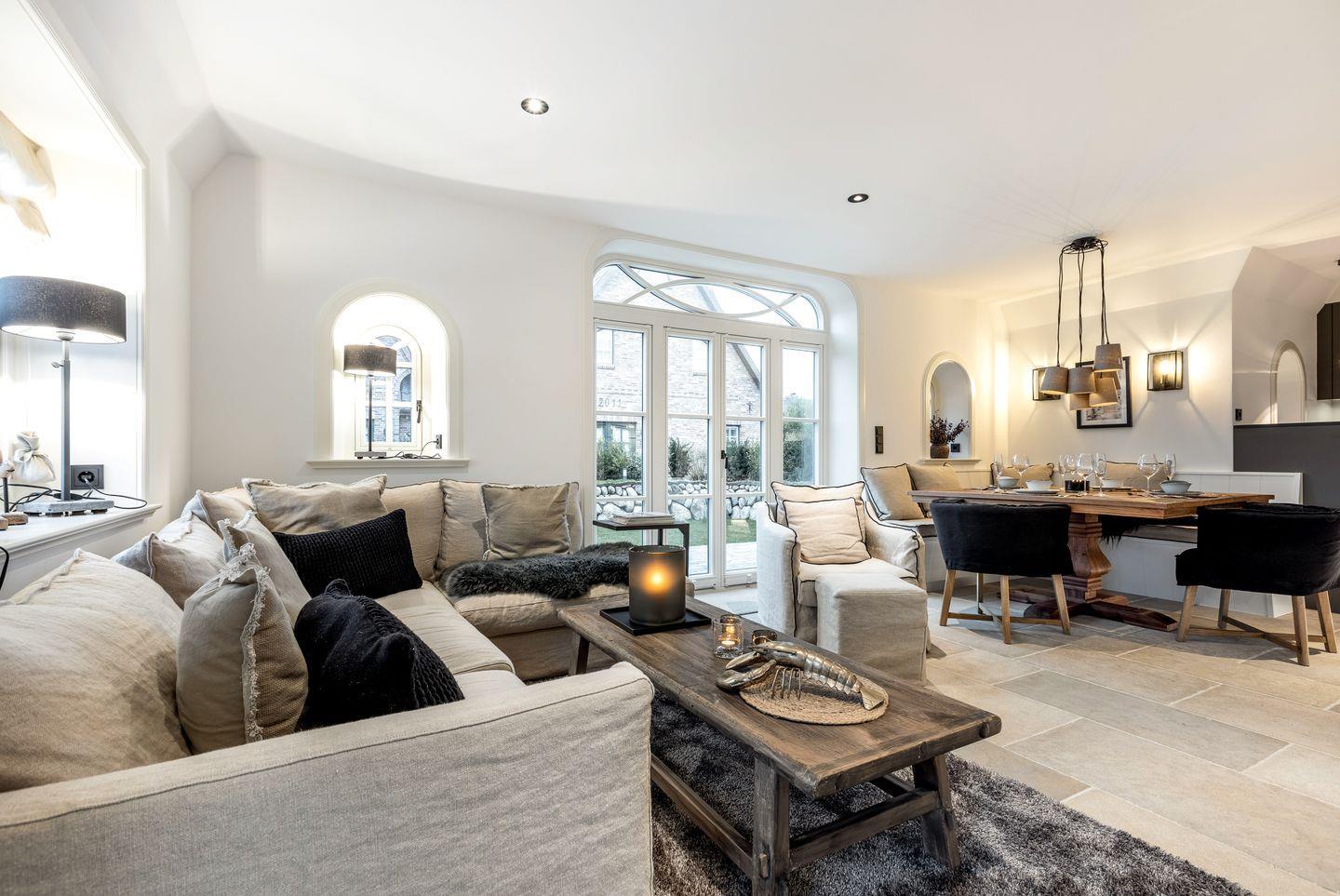 Mit besonders viel Liebe zum Detail wurde der Wohnraum des Hauses gestaltet. Entspannen Sie sich auf der großen Couch vor dem Kamin mit kuscheligem Teppich unter den Füßen oder schauen Sie Ihre Lieblingsserie auf dem Flatscreen-TV. Der Essbereich lädt mit einer eingebauten Sitzbank zum „länger sitzenbleiben“ ein und in der top-ausgestatteten, offenen Küche lässt sich wenn gewünscht problemlos ein ganzes Urlaubsmenü zaubern. Vom Wohnbereich aus betreten Sie Ihren privaten Garten mit möblierter Terrasse und einer Garage inklusive Wallbox für Elektroautos.